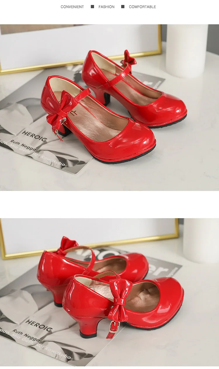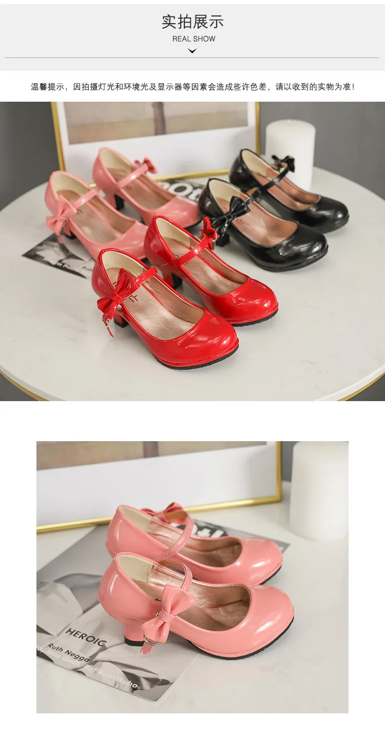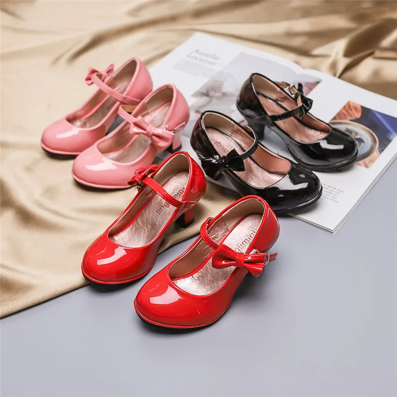 Туфли на высоком каблуке для детей 3, 4, 5, 6, 7, 8, 9, 11 лет, детские кожаные туфли с бантом, элегантные весенние туфли принцессы для школьных танцев, 2021