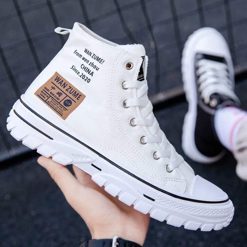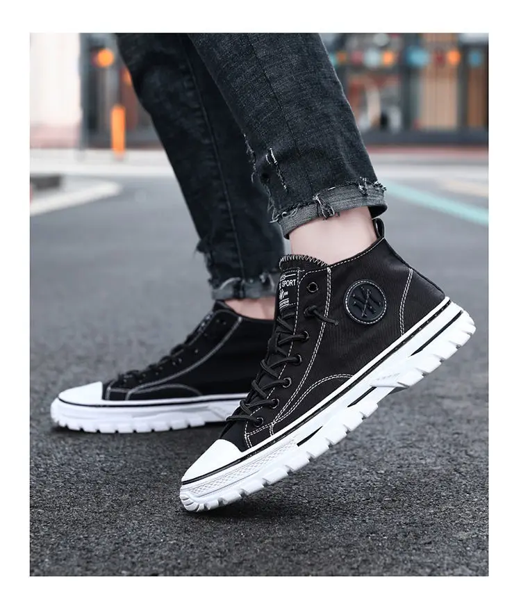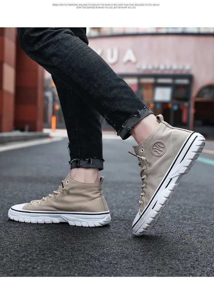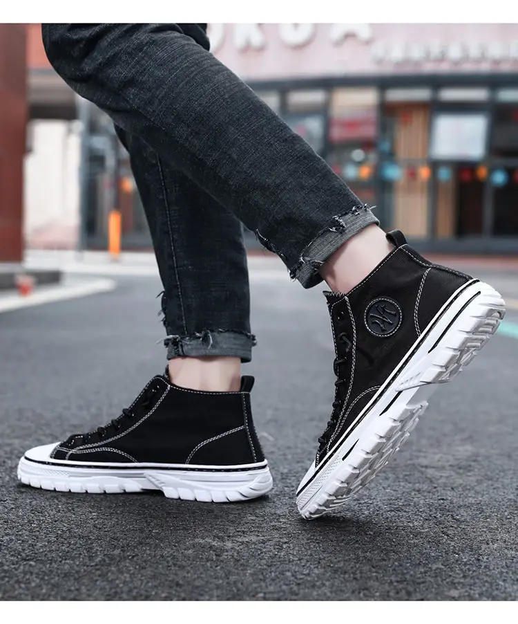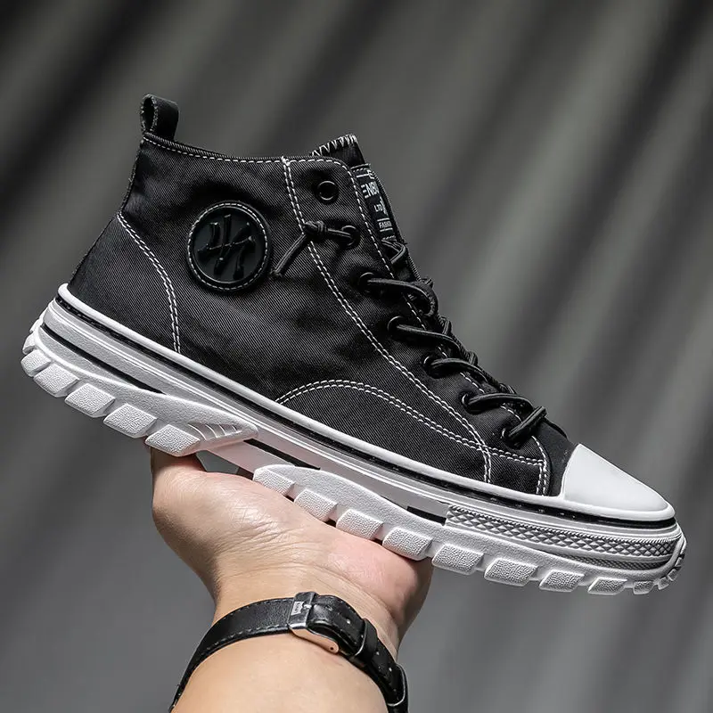 Мужские парусиновые туфли с высоким берцем, дышащая Нескользящая му...