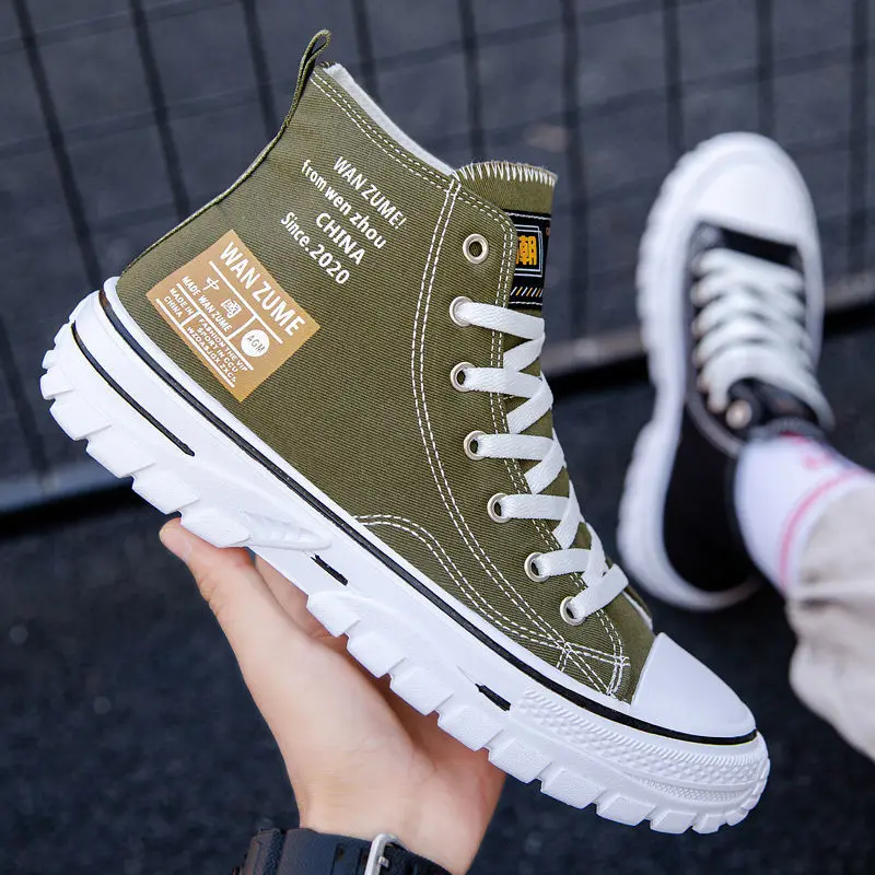 Модная зеленая одежда для мужчин светильник дышащая холщовая обувь; Сезон весна-осень; На каждый день; Обувь с высоким берцем однотонные Цвет Модные Повседневные кроссовки; Обувь для катания на скейтборде;