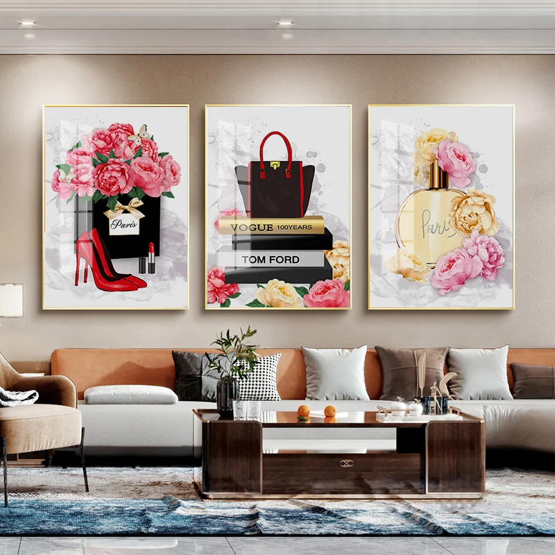 Название продукта: нордический минималистский модный флакон для духов цветок сумка на высоком каблуке черная белая декоративная живопись для гостиной настенный постер в спальню
