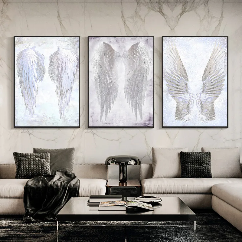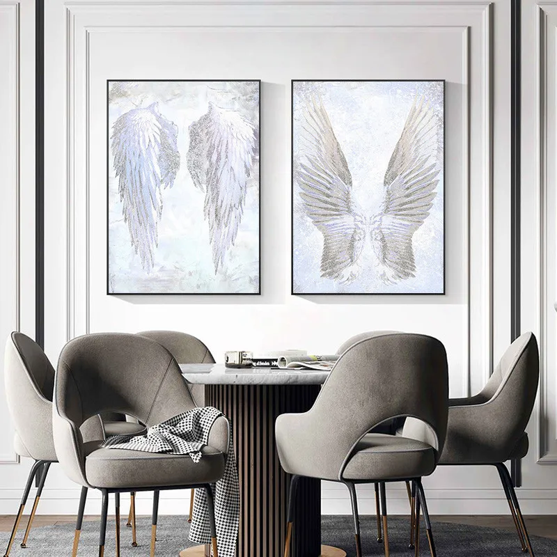 Современная Настенная картина с белыми крыльями ангела и перьями, искусство на холсте, фотография для гостиной, Постер и принты без рамки