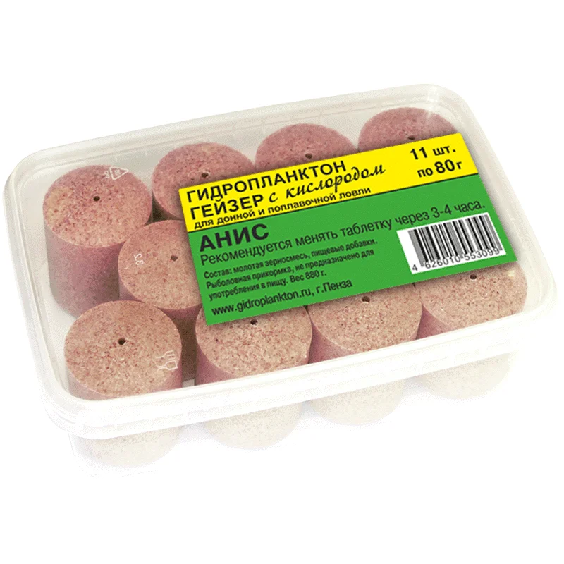 Гидропланктон Гейзер 80г продается в герметичных пластиковых контейнерах по 11 таблеток, все таблетки в контейнере одного сорта.