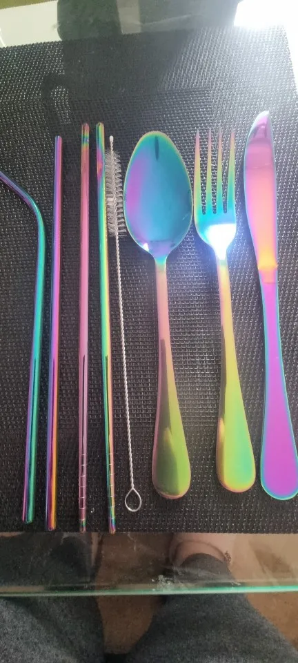 8 шт./компл. многоразовая посуда набор столовых приборов для путешествий Набор посуды для лагеря с ложкой из нержавеющей стали вилка палочки для еды соломенный портативный чехол