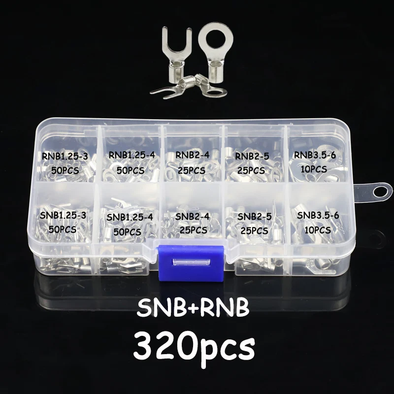 320 шт.корт. 10 в 1 клеммы неизолированные кольцевые вилки U-образные латунные клеммы набор в ассортименте Кабельный соединитель ОБЖИМНАЯ лопатка