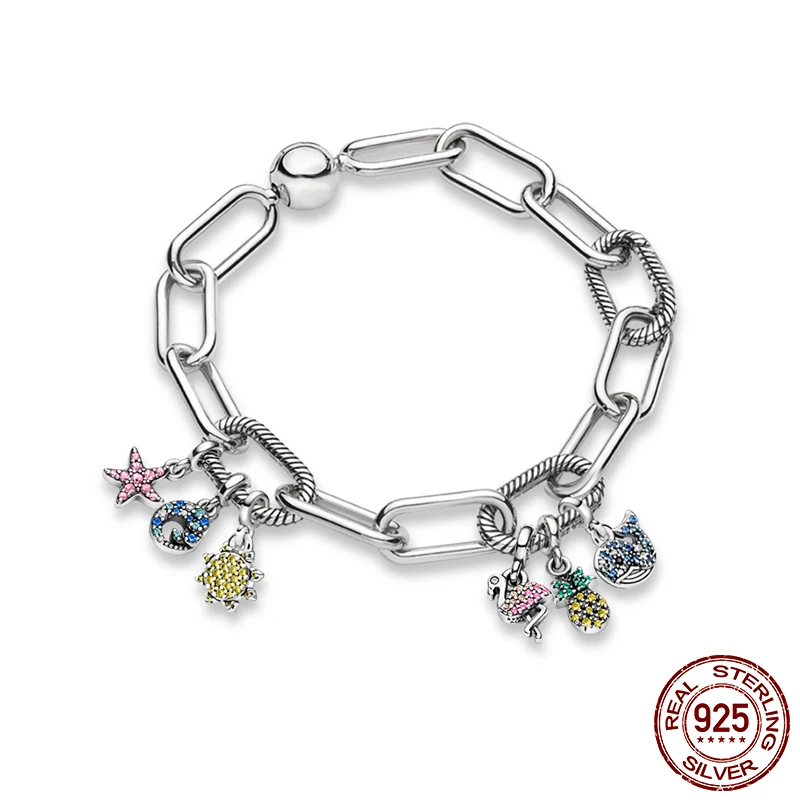 Женский браслет-цепочка из серебра 925 пробы с подвесками в виде се...