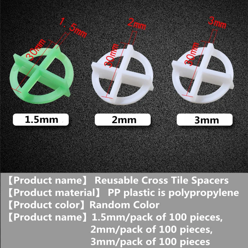 100 шт./пакет 1,5/2/3 мм выравнивания плитки крест Клин съемный Плитки выравнивания плитки разрез локатор укладка пола выравнивания Системы база Кепки Spacer Характеристика:-- Работает со всеми размерами мрамора, гранита, фарфора и плитки большого формата.-- Для горизонтальной и вертикальной установки плитки стен и пола.-- Поместите прокладки в соединение решетки для выравнивания и пространства.-Очень быстро устанавливается и снимается. Улучшает скорость укладки плитки.-- 100 шт. в упаковке. Многоразовые и Экономичные. Характеристики:Размер: 30*1,5 мм/30*2,0 мм/30*3,0 ммМатериал: PP пластикЦвет: случайный цвет Посылка включает в себя:100 x инструменты для выравнивания поперечной плитки