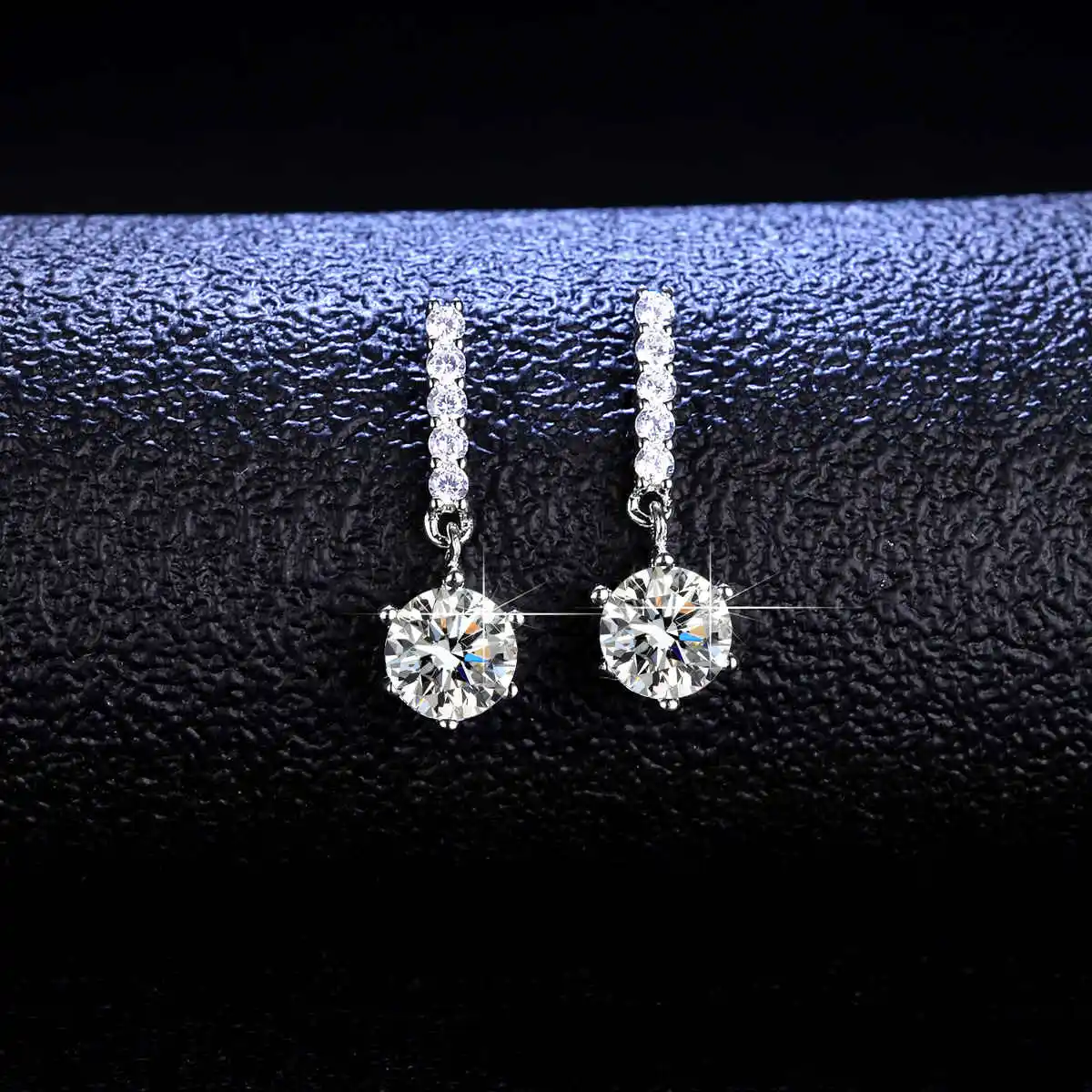 Серьги-подвески из серебра 925 пробы, круглой огранки 2 карата, с бриллиантами