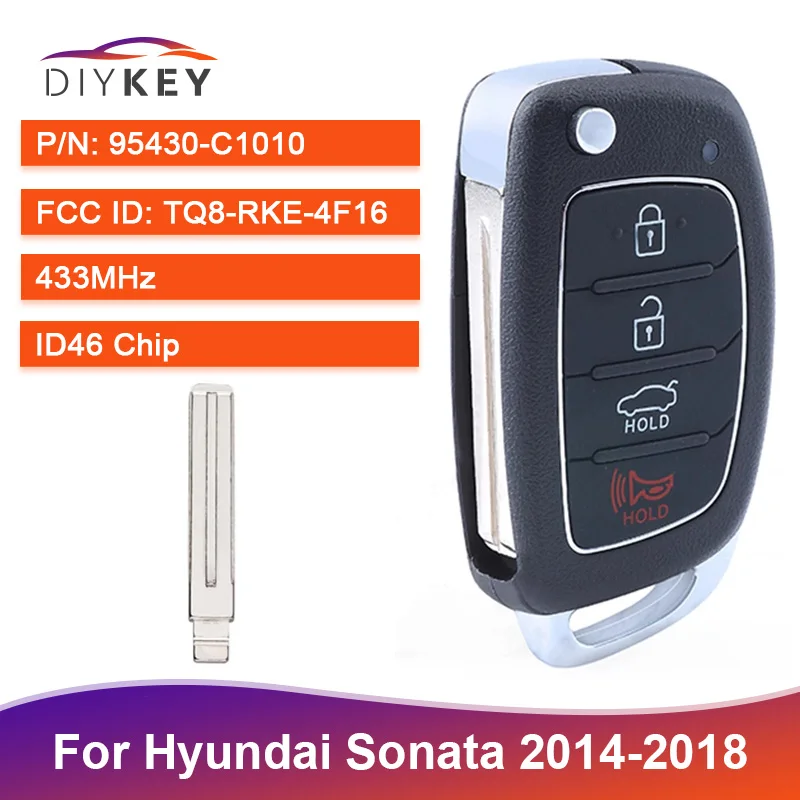 Флип-дистанционный смарт-ключ DIYKEY 95430-C1010, 433 МГц, чип ID46, 4 кнопки, для Hyundai Sonata 2014, 2015, 2016, 2017