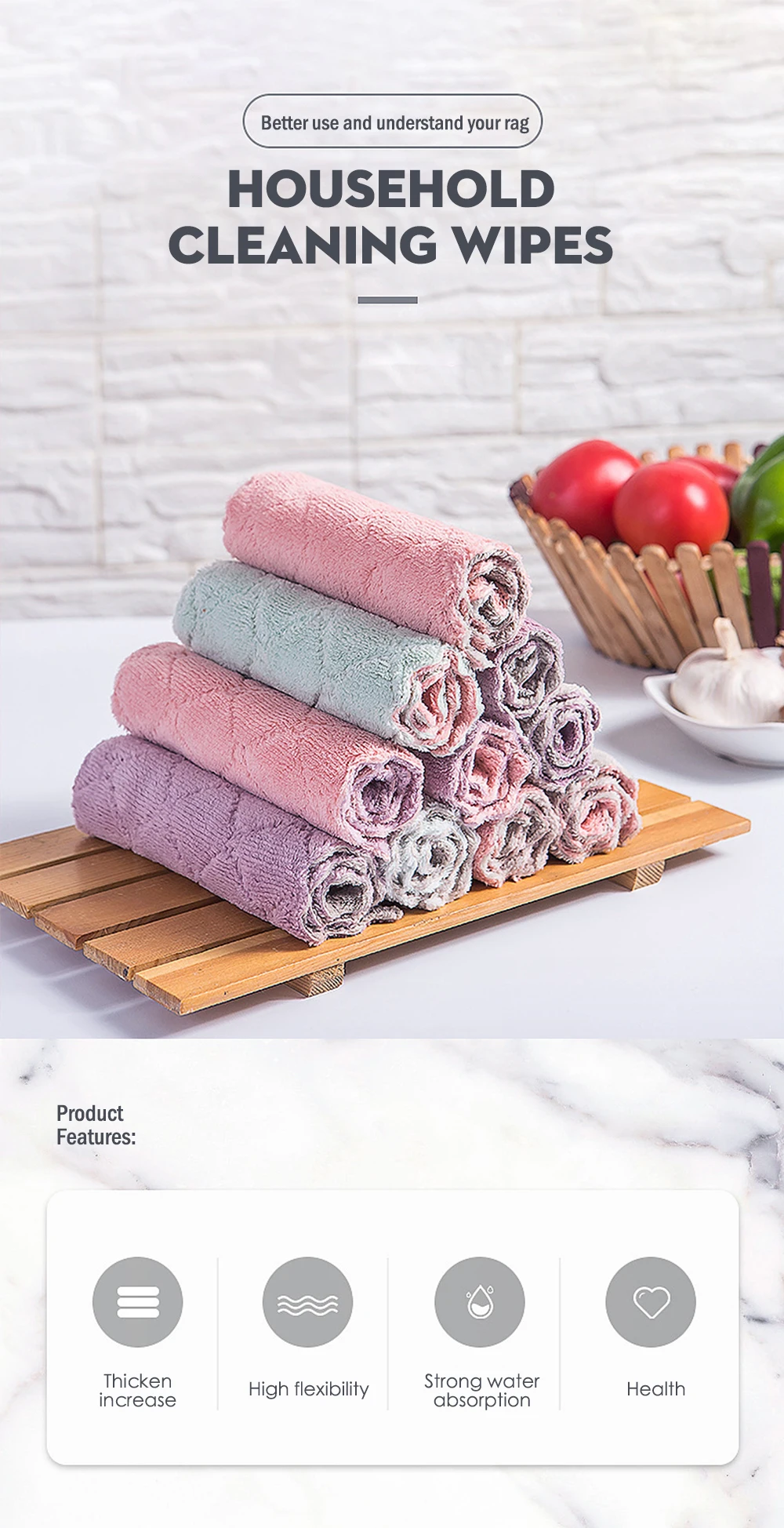 Тряпки для кухни, впитывающие полотенца из микрофибры, эффективны против жира, для уборки дома, посуды