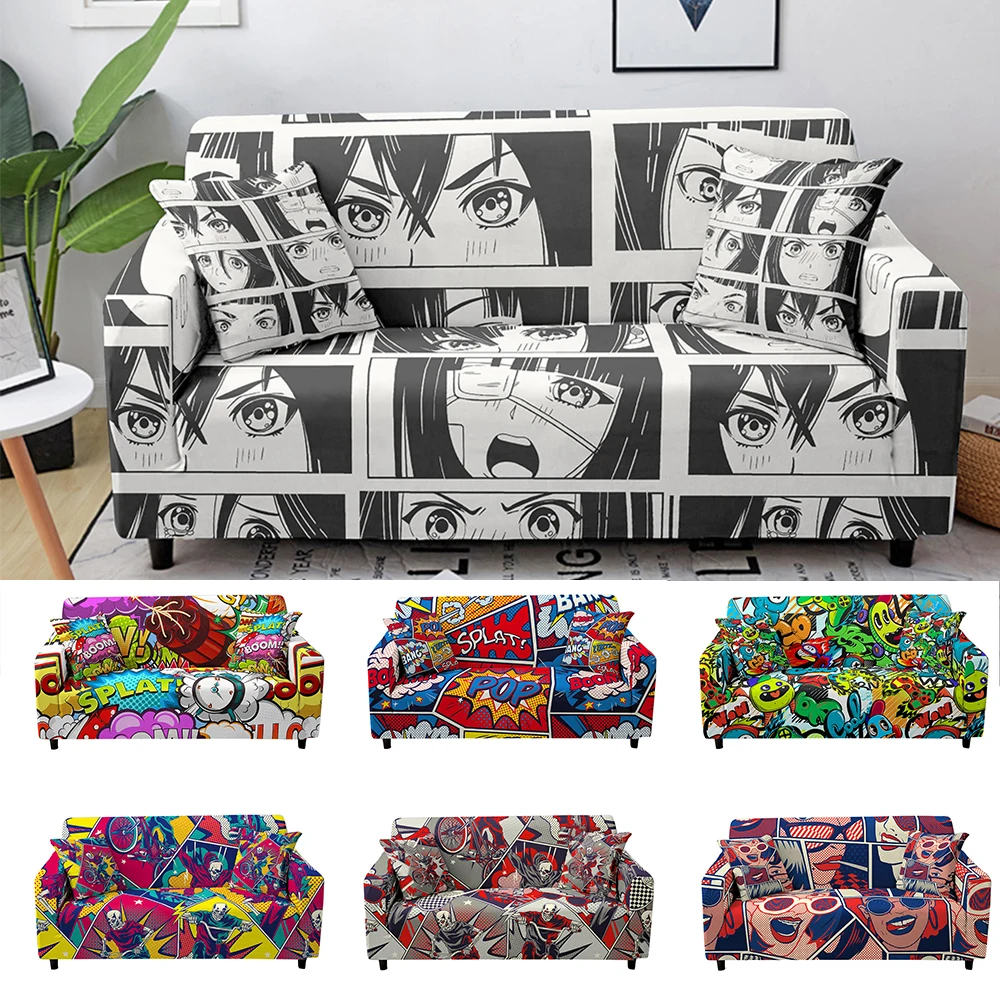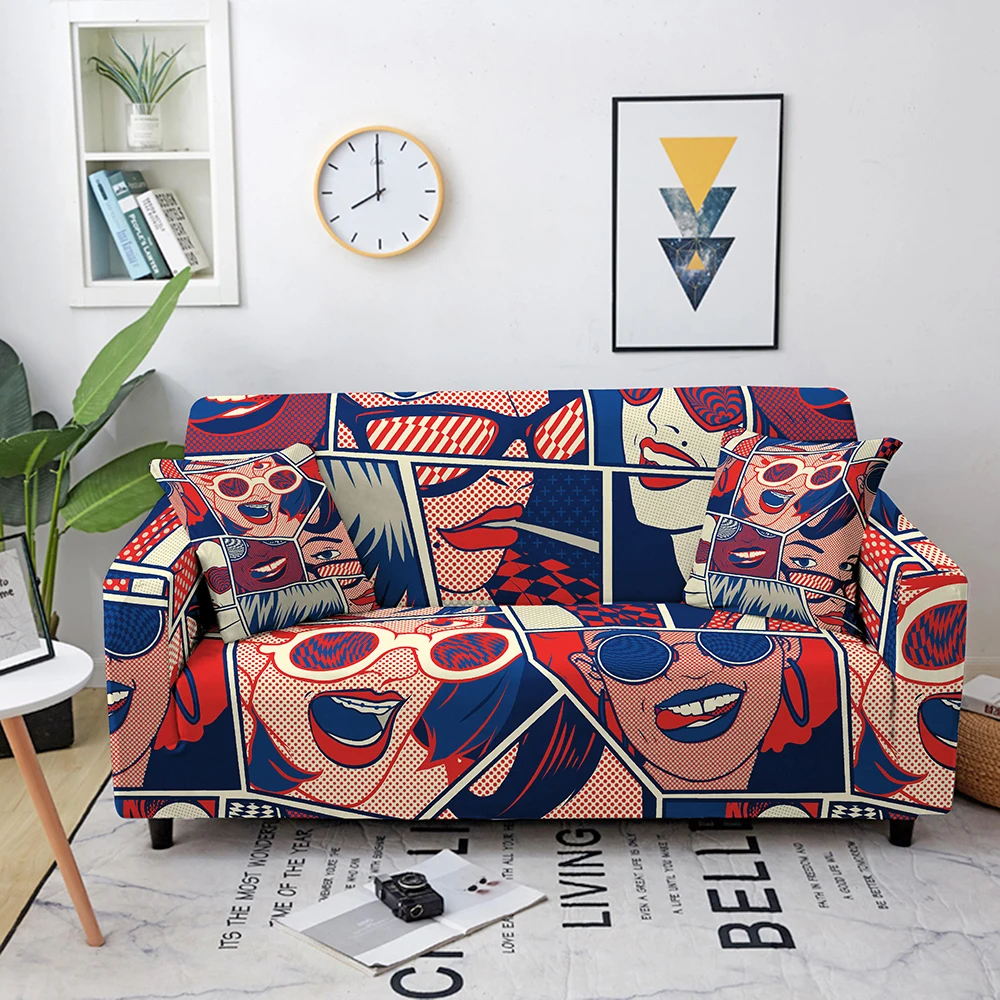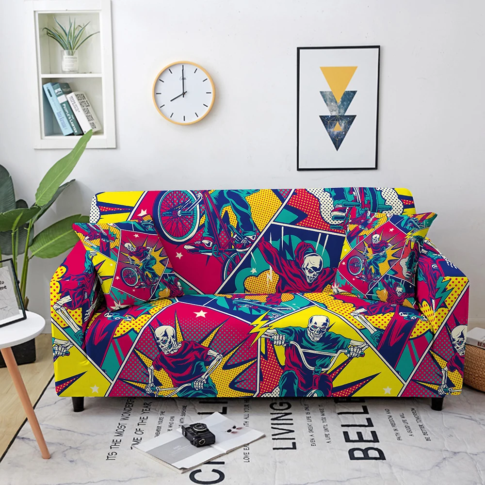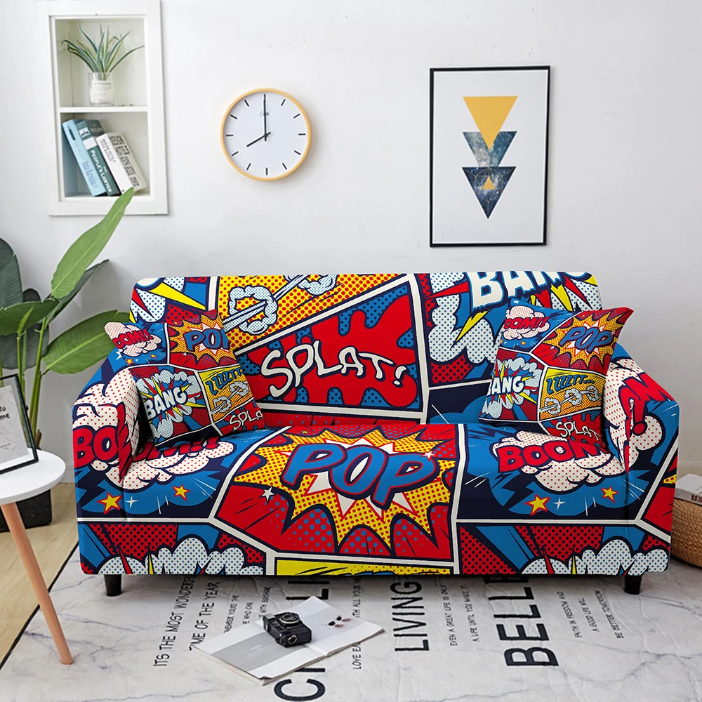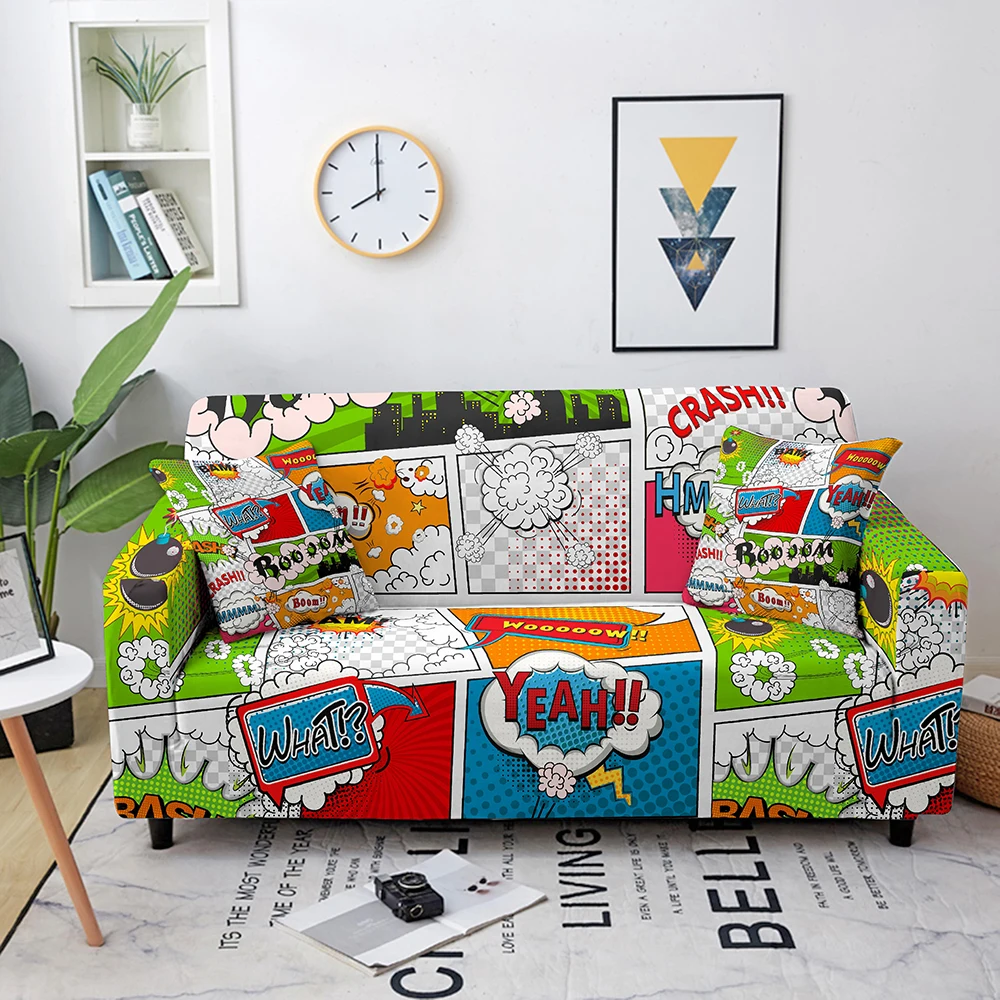 Эластичные Чехлы для дивана с мультяшным пэчворком, чехлы для гостиной, чехлы в стиле хиппи, хип-поп, чехол для углового дивана, чехол для 1-4 сидений