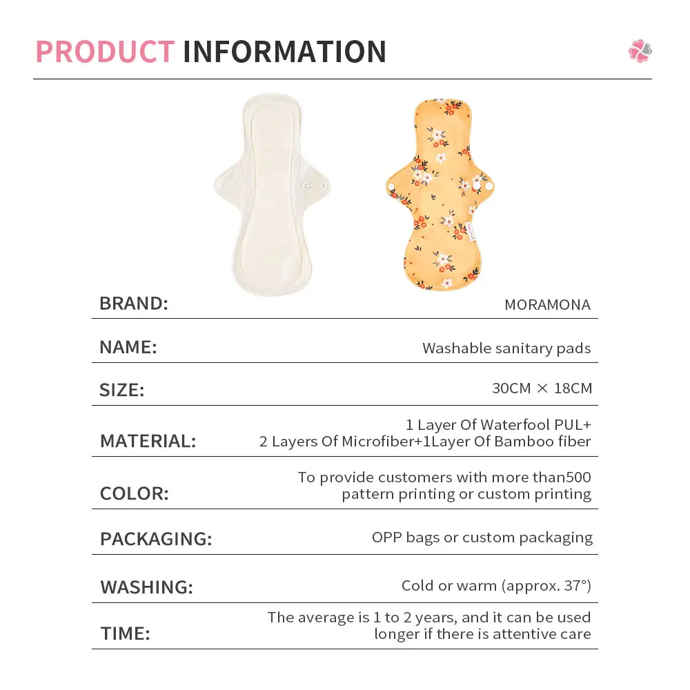 Многоразовая гигиеническая салфетка Mora Mona состоит из 4 защитных слоев: 1 слой поверхности из бамбукового волокна, 2 слоя промежуточного слоя из микрофибры и 1 слой внешнего водонепроницаемого пула. Внутренний слой из микрофибры является Супер абсорбирующим, что может устранить запахи и сохранить его в сухости. Поверхность бамбукового волокна обладает здоровыми и мягкими свойствами для ухода за кожей. Внешний слой PUL является водонепроницаемым для предотвращения протечек.Кнопка в нижней части гигиенической салфетки легко открывается и закрывается, эффективно предотвращая выпадение менструальной ткани и предотвращая боковую утечку.Менструальный коврик можно мыть водой и использовать повторно в течение 2-3 лет. Использование моющийся санитарный салфетки может значительно уменьшить разрядку.Легко носить с собой. Сложите гигиеническую салфетку в маленькую форму конверта, затем Прикрепите кнопку, затем аккуратно поместите ее в пакет для хранения. Подходит для путешествий, улицы или повседневного использования.Наши гигиенические салфетки легко моются и высыхают, их можно стирать вручную и в машине, просто краску с мягким моющим средством (до тех пор, пока вода не будет чистой), а затем сушить в подвешенном состоянии