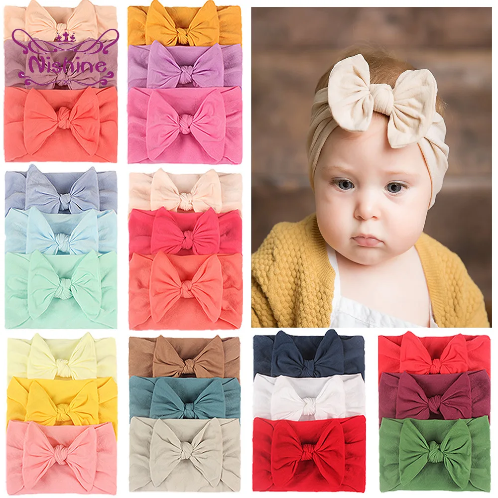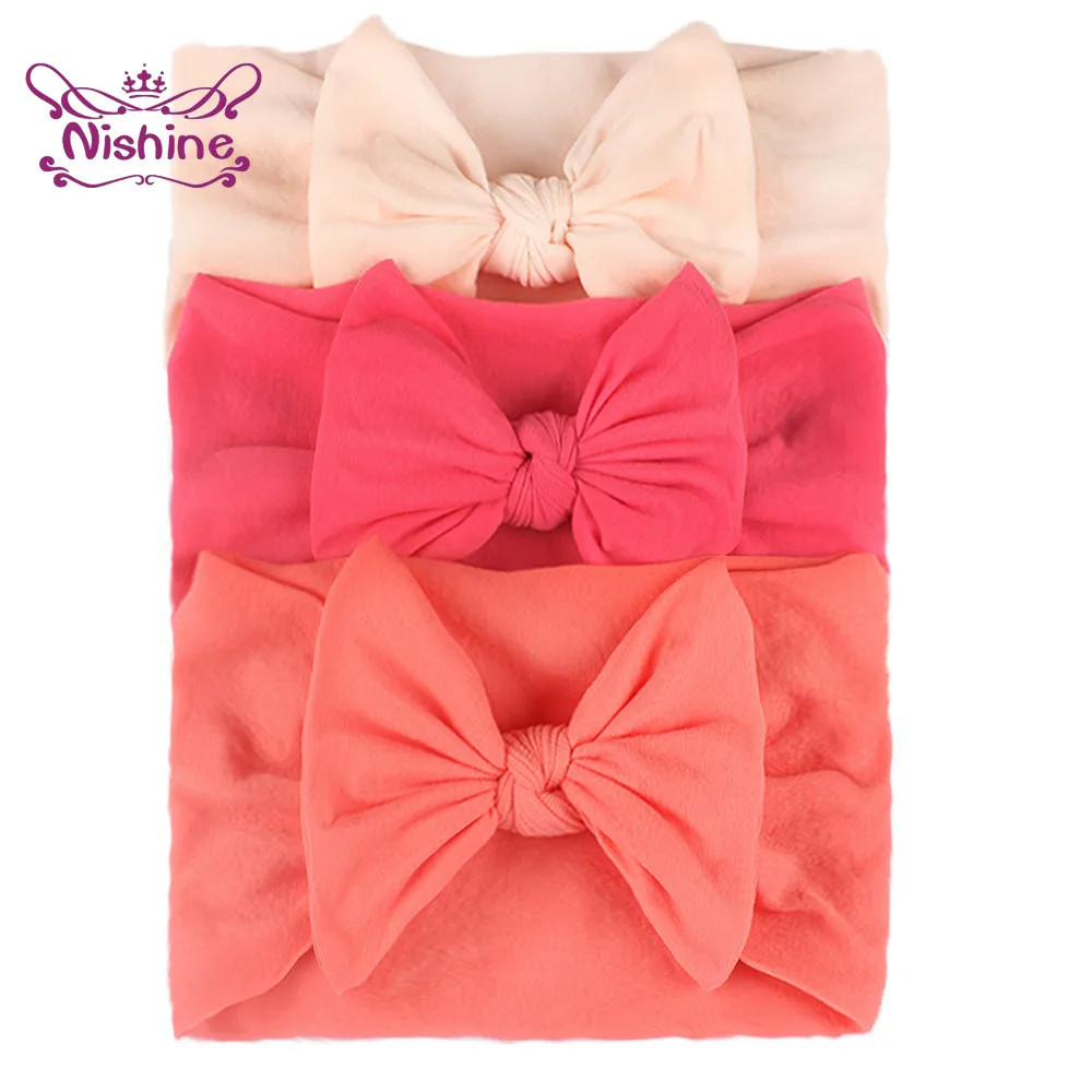 Nishine 3 шт.лот мягкая приятная для кожи эластичная нейлоновая повязка на голову однотонная ручная работа бант детский ободок Детские аксессуары