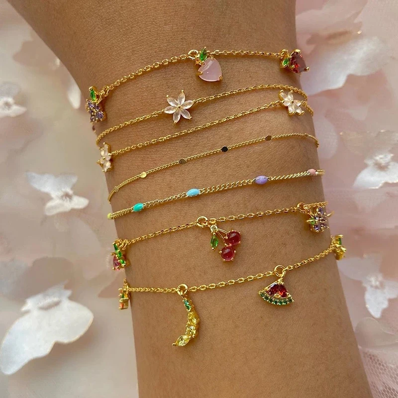 S925 стерлингового серебра браслет INS Красочные Циркон фрукты Клуб...