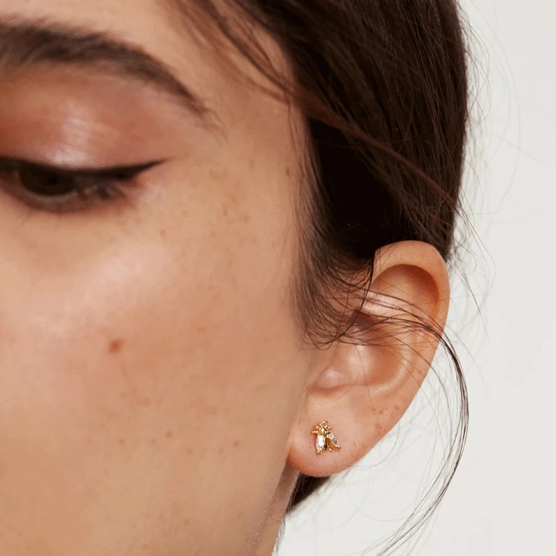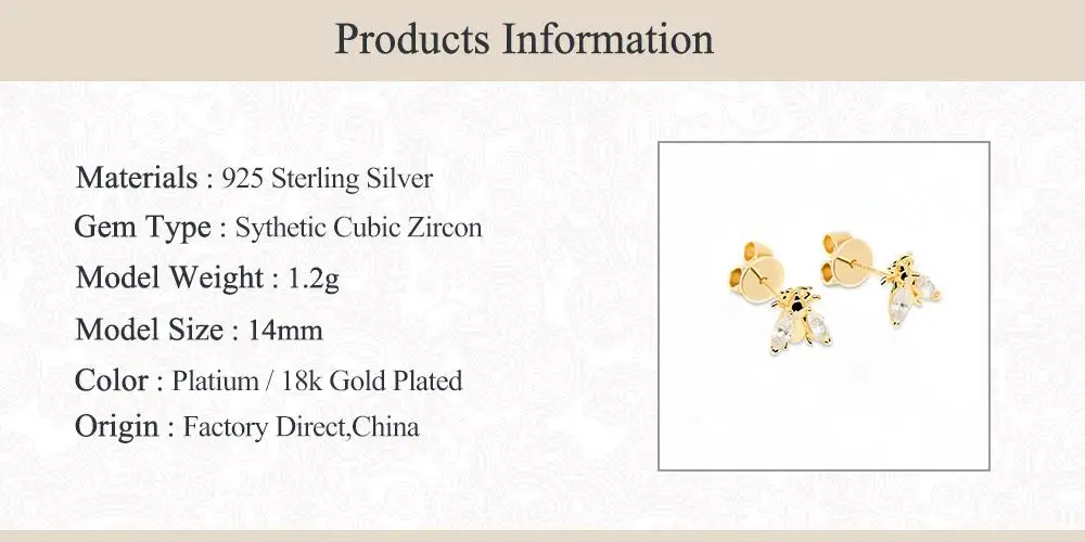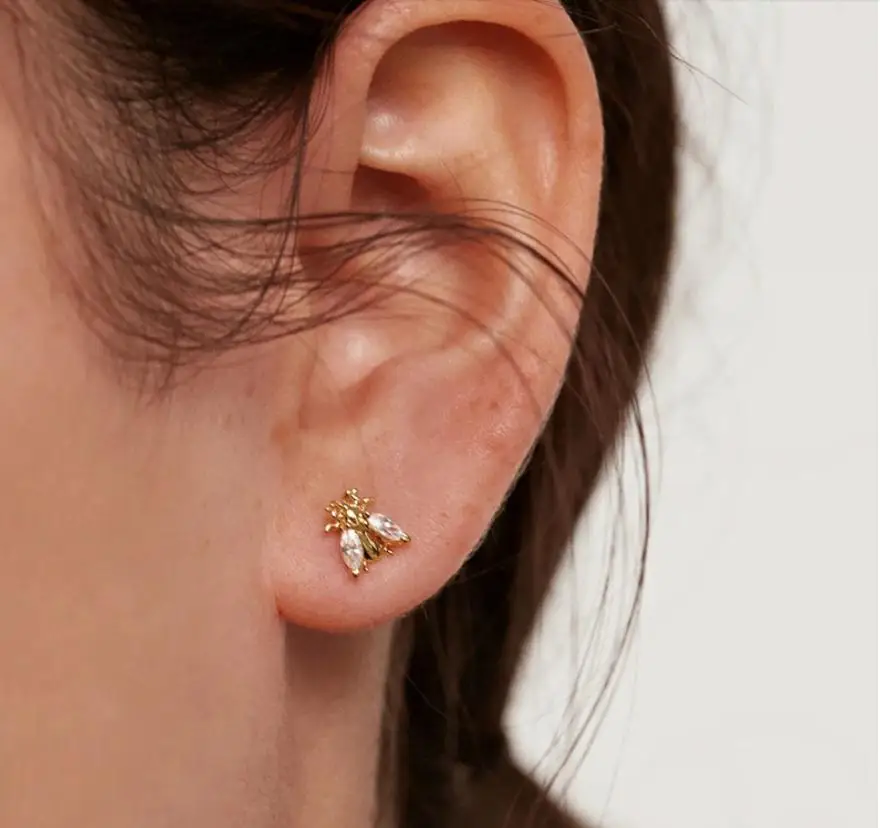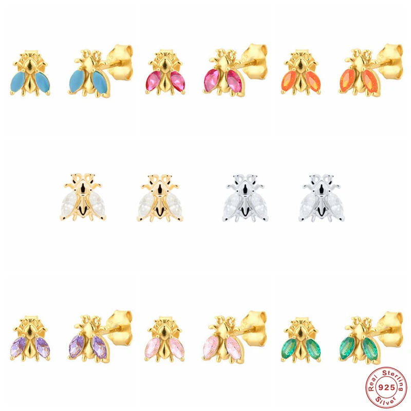 Женские серьги-гвоздики из стерлингового серебра 925 пробы с радужным цирконием в виде крыла пчелы, роскошные украшения для пирсинга в виде животных