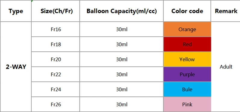 Fr16 Fr18 Fr20 Fr22 Fr24Если вам нужны другие размеры, пожалуйста, оставьте мне сообщение
