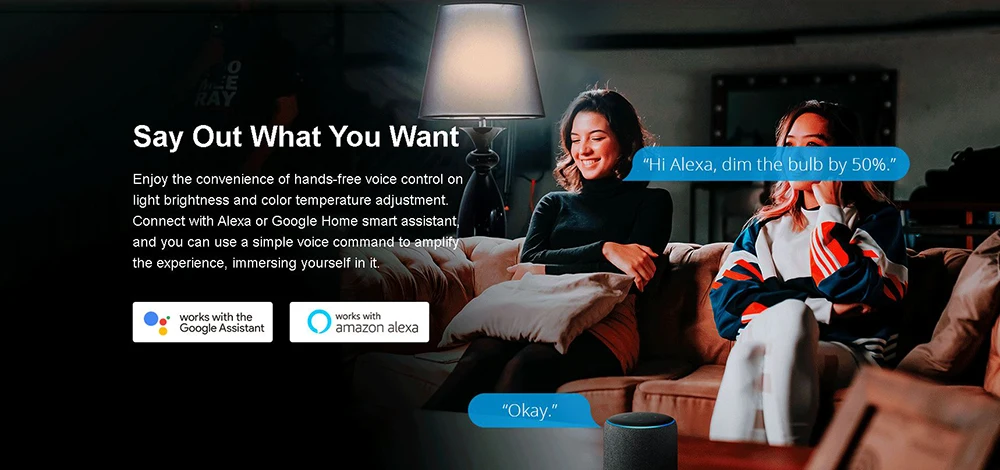 Поддержка голоса для включения/выключения, регулировка яркости и цветовой температуры