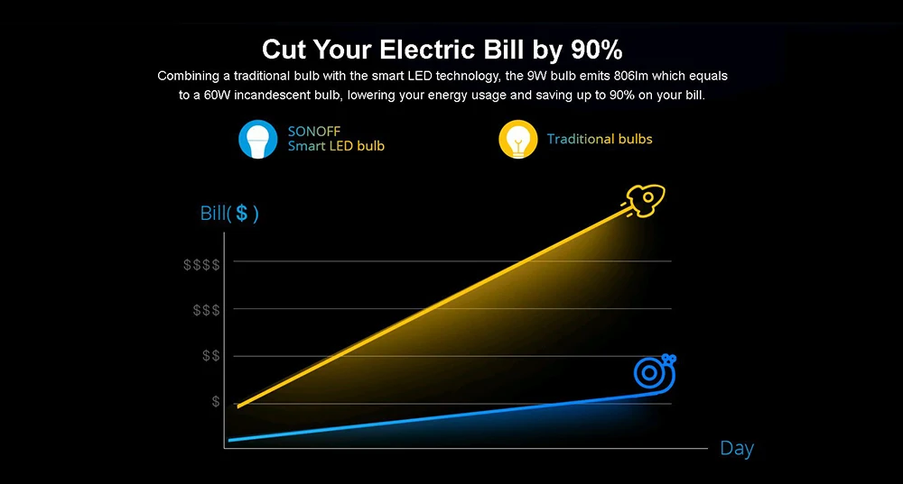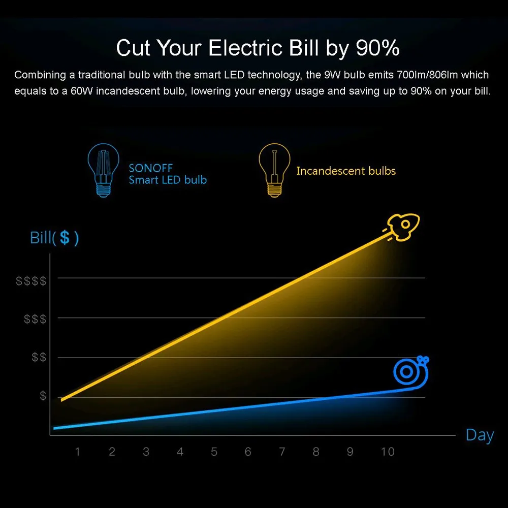 Уникальный светодиодный смарт-технология гарантирует, что лампа сохранит ваши счета за электричество на 90%
