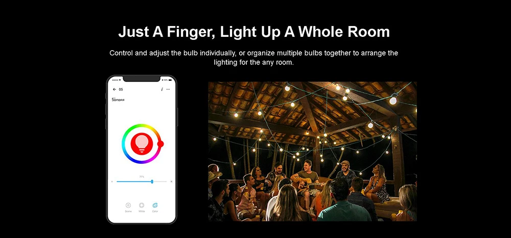 Даже вы можете установить лампу, чтобы включить или выключить дверь с датчиком SONOFF DW2-Wi-Fi двери. Светодиодный смарт-лампочка SONOFF позволяет вам тускнеть и настроиться на разную цветовую температуру через скольжение панели в приложении. Он имеет широкий диапазон яркости от 2700K до 6500K, который достаточно яркий для почти любого пространства для использования. Работает с третьей вечерние умных помощников из поставляется через поддержка Alexa и Google Home, так что вы можете контролировать лампочку, регулировки яркости и цвета, используя ваш голос. Умная лампа 7 Вт может производить 60 ВАТТ эквивалент 806 люмен, чтобы снизить на электроэнергию значительно. Кроме того, он был надежным с расписанием времени, что делает лампу автоматически включаться и выключаться в установленное время дня. Лампочка также поставляется с восемью дополнительными заданными режимами сцены, которые позволяют мгновенно получить доступ к окружающей среде, которую вы хотите повысить. Если вы получите множество SONOFF умный светодиодный ламп, группа-функция управления-это очень удобно для вас, чтобы включать и выключать вместе, настройте всю цветовую температуру и яркость на один и тот же уровень, нажав на приложение.
