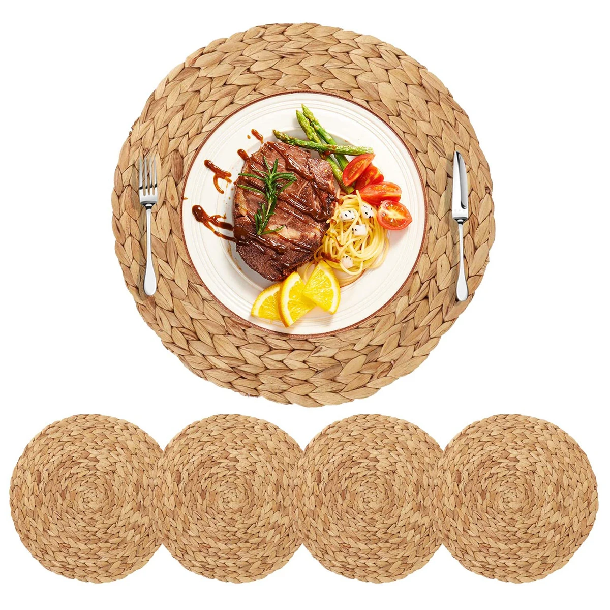 4 шт., термостойкие, Нескользящие, из плетеные коврики натуральной ...