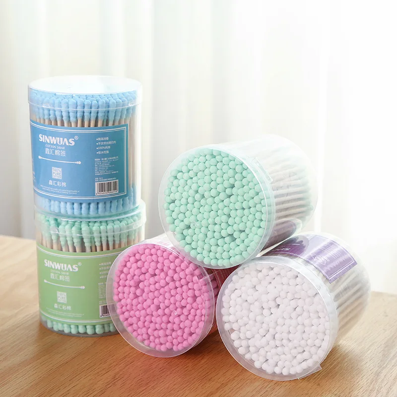 Розовые 100200 шт.коркорт. Ватные палочки с двойной головкой бамбуковые палочки ватные палочки одноразовые ватные палочки для красоты макияжа носа ушей Cleanin