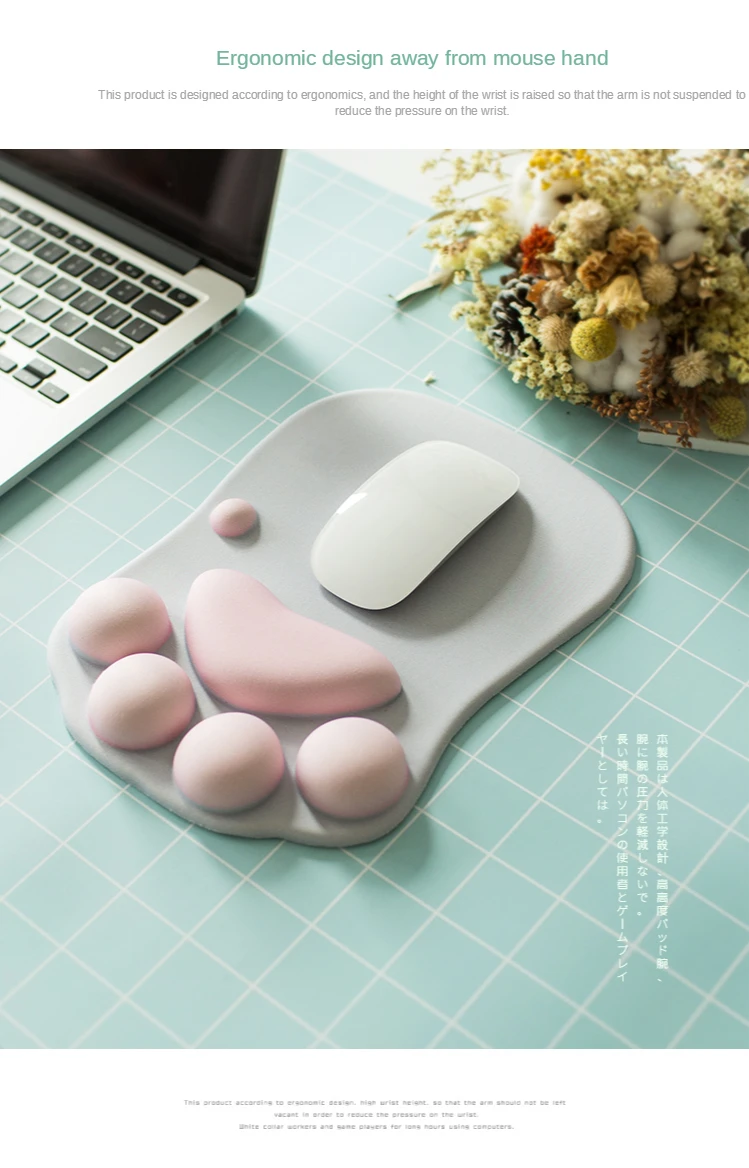 3D коврик для мыши, мягкий силиконовый милый коврик для мыши с кошачьей лапой, подставки для запястья из пены с эффектом памяти, настольные подушки, коврик для мыши для ноутбука, компьютера, коврика для мыши