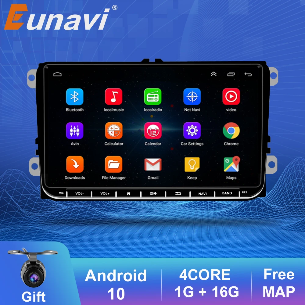 Автомагнитола Eunavi, 9 дюймов, 2din, Android 9.0, GPS-навигатор, автомобильный мультимедийный плеер для VW Volkswagen, Golf, Polo, passat b6, B7, Touran, автомагнитола
