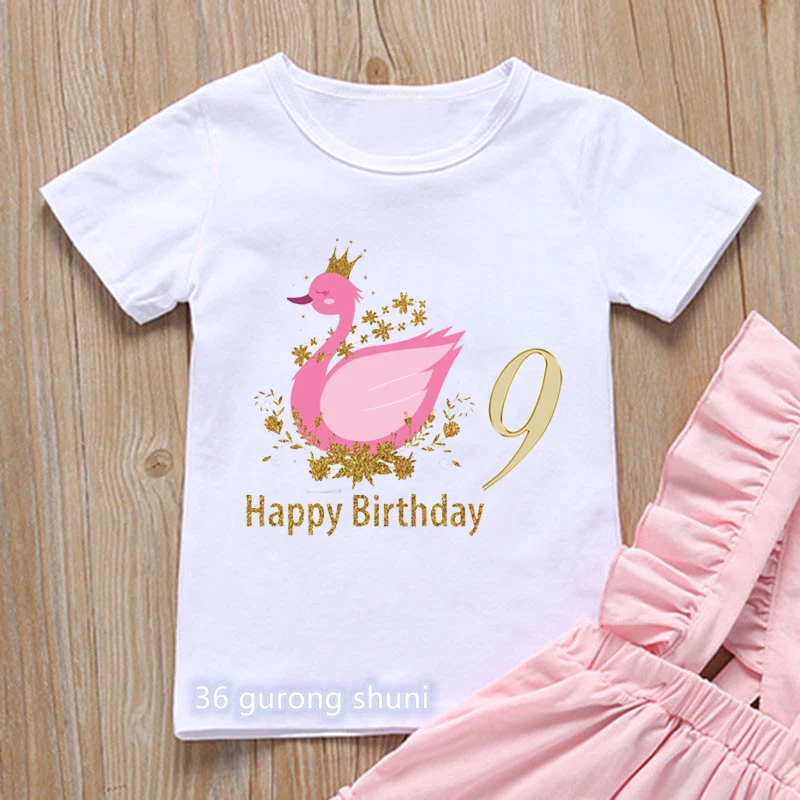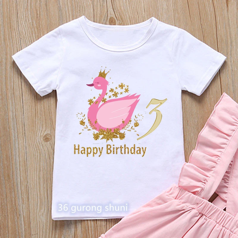 Футболка для девочек 3-10 лет, смешной костюм с рисунком фламинго, милый детский костюм на день рождения, летняя розовая и белая одежда