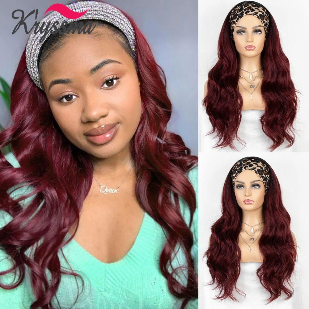 Парик с красной головной повязкой Kryssma для чернокожих женщин, си...