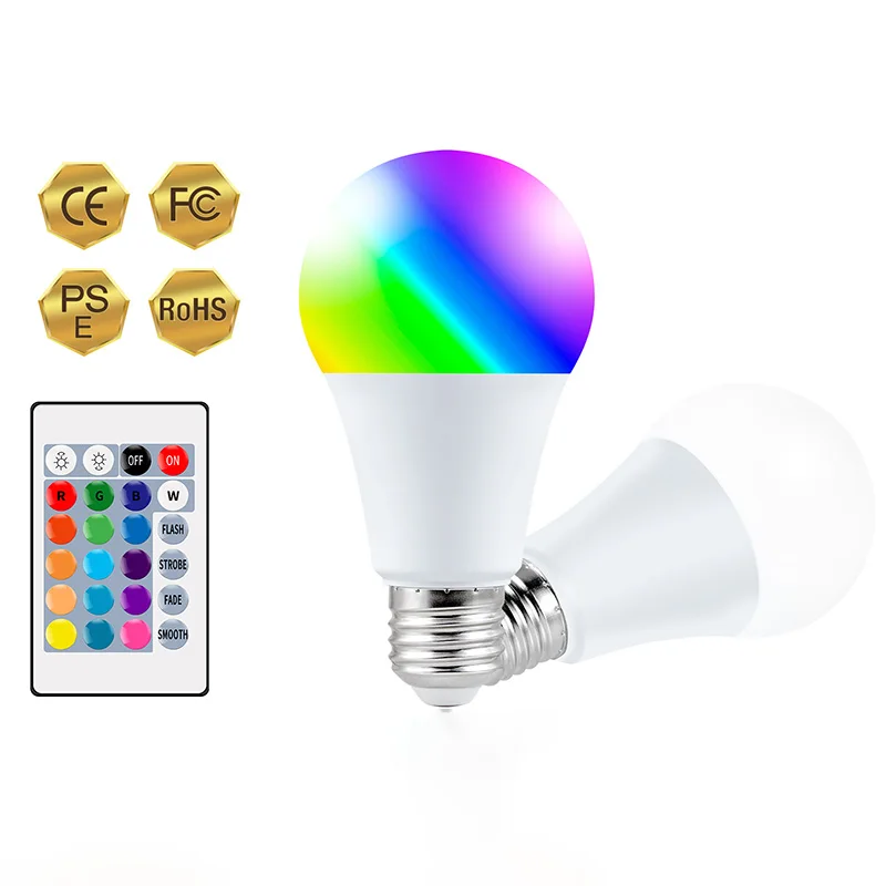 Светодиодная RGB лампочка E27 с дистанционным управлением, цветные ...