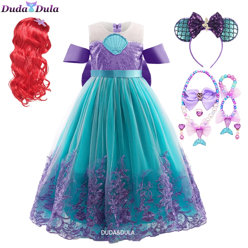 Детский Костюм Русалки Ариэль, платье принцессы для косплея, нарядный костюм на Хэллоуин, детская одежда для карнавала вечерние, летнее платье