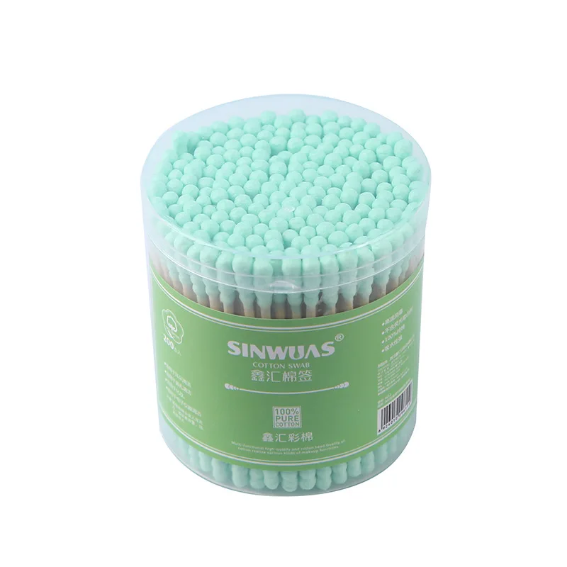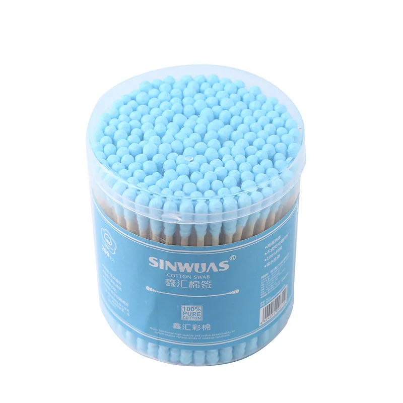 Голубые 100200 шт.коркорт. Ватные палочки с двойной головкой бамбуковые палочки ватные палочки одноразовые ватные палочки для красоты макияжа носа ушей Cleanin
