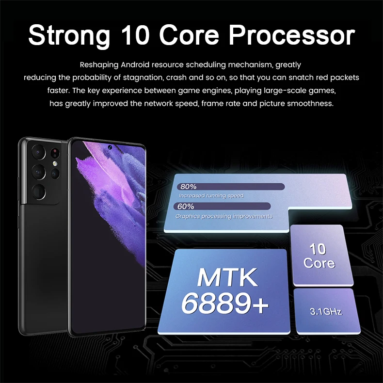 Смартфон S21U, экран 6,8 дюйма, 10 ядер, 6800 мАч, разблокировка, экран Глобальная версия дюйма, 4G 5G, Android, камера 24 Мп + 48 МП, 12 Гб + 512 Гб