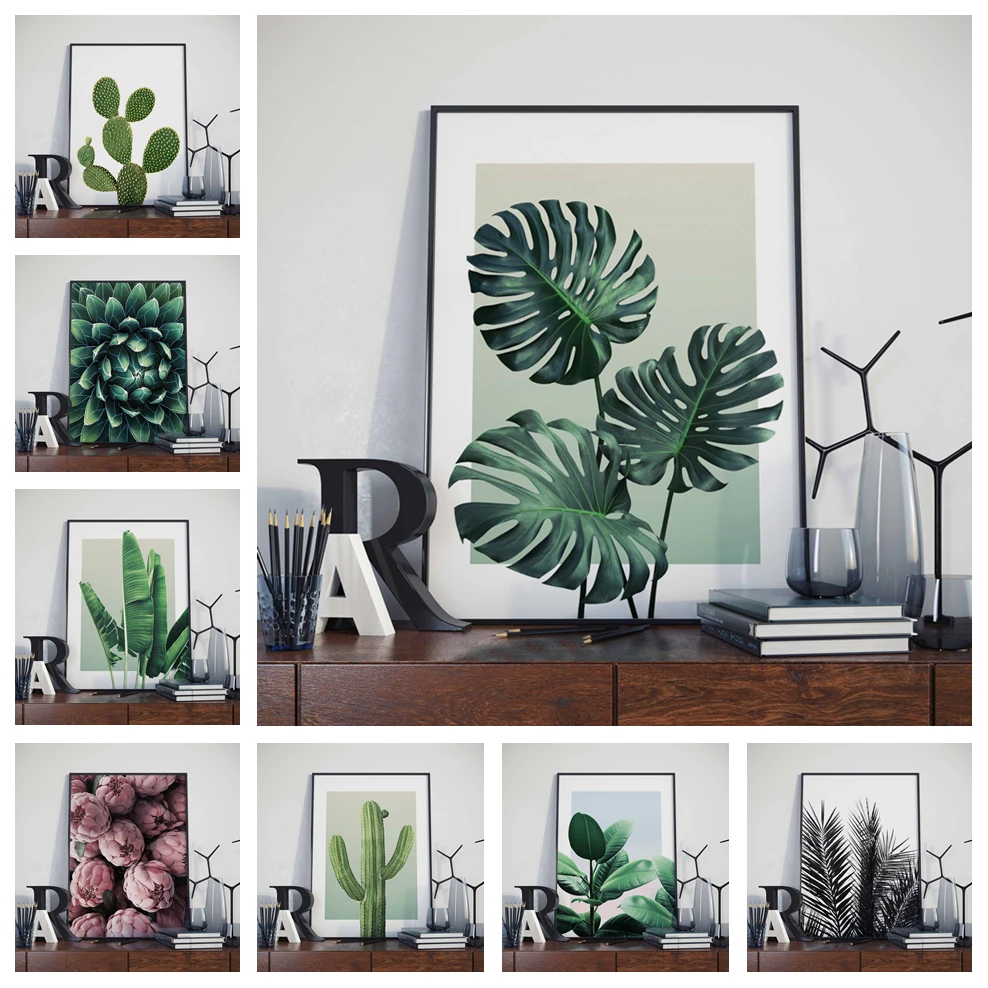 Декор для дома из тропических растений в скандинавском стиле, Декоративные Современные постеры с зелеными листьями в скандинавском стиле, Настенная картина на холсте, H131
