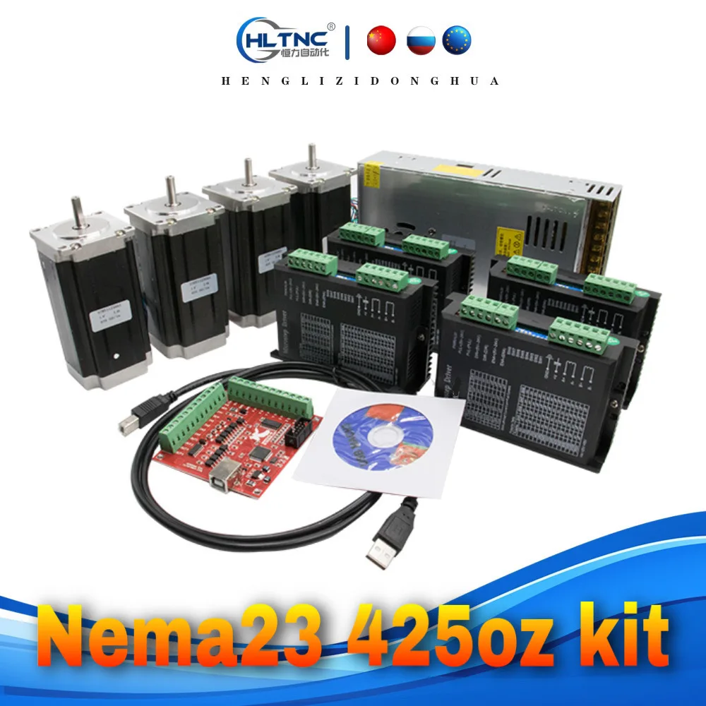 HLTNC 4-осевой комплект 3A 3N.M Nema23 425 Oz-in шаговый двигатель ...