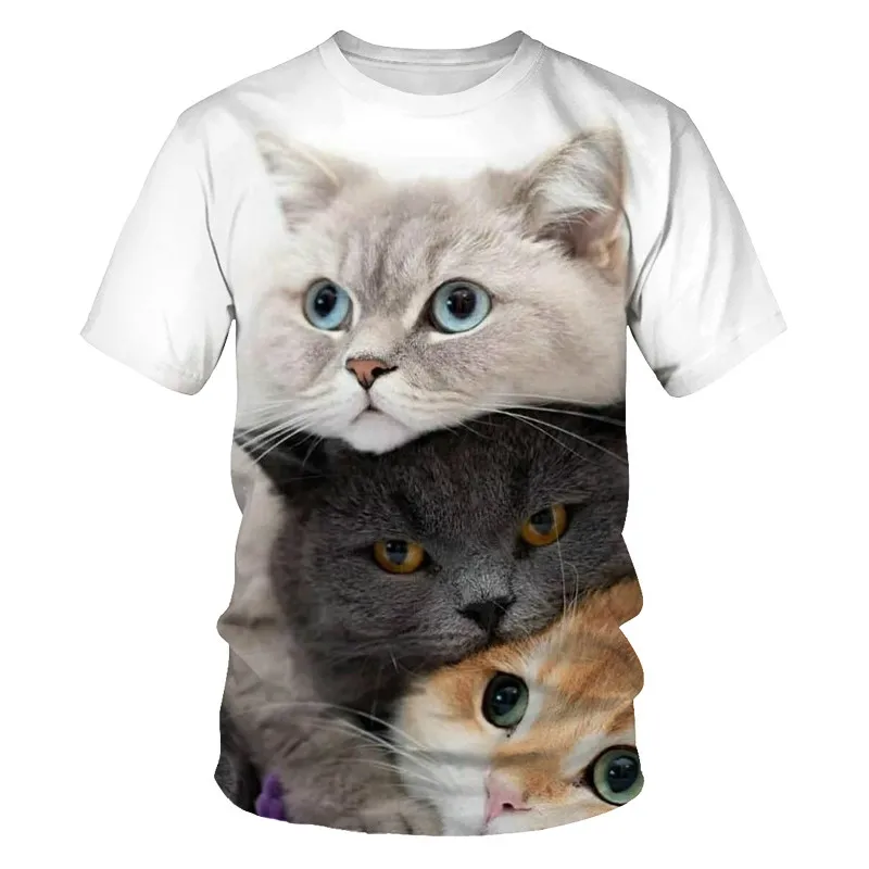 Футболки с 3D принтом кошки для мужчин и женщин, милые футболки с животными, детская одежда, одежда для пар (100-6XL)