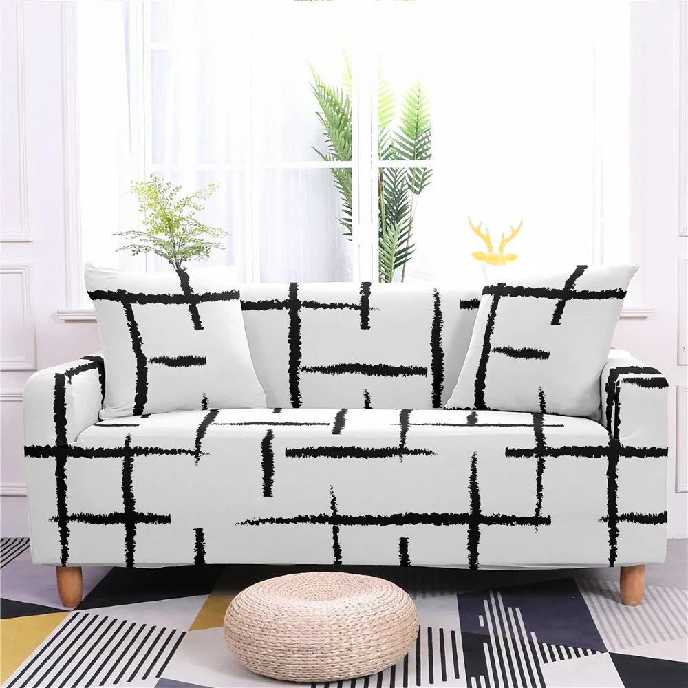 Геометрической формы в клетку эластичный диванных чехлов для Гостиная стрейч диван Чехол чехол для секционного дивана Мрамор печати L Форма протектор
