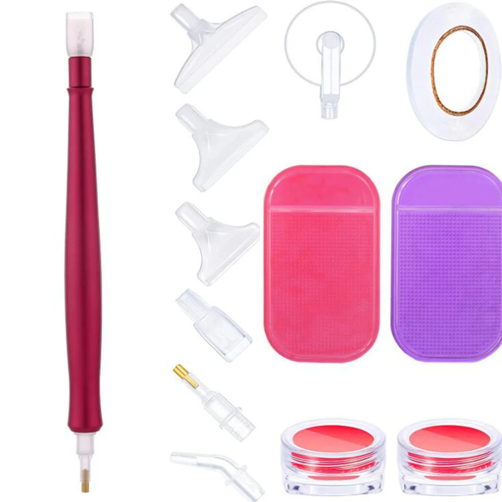 Инструмент для алмазной живописи, аксессуары, ручка из сплава с двойной головкой, со сменным наконечником, воском и нескользящим ковриком