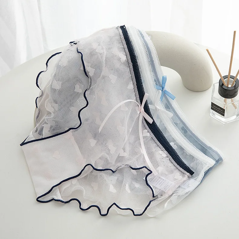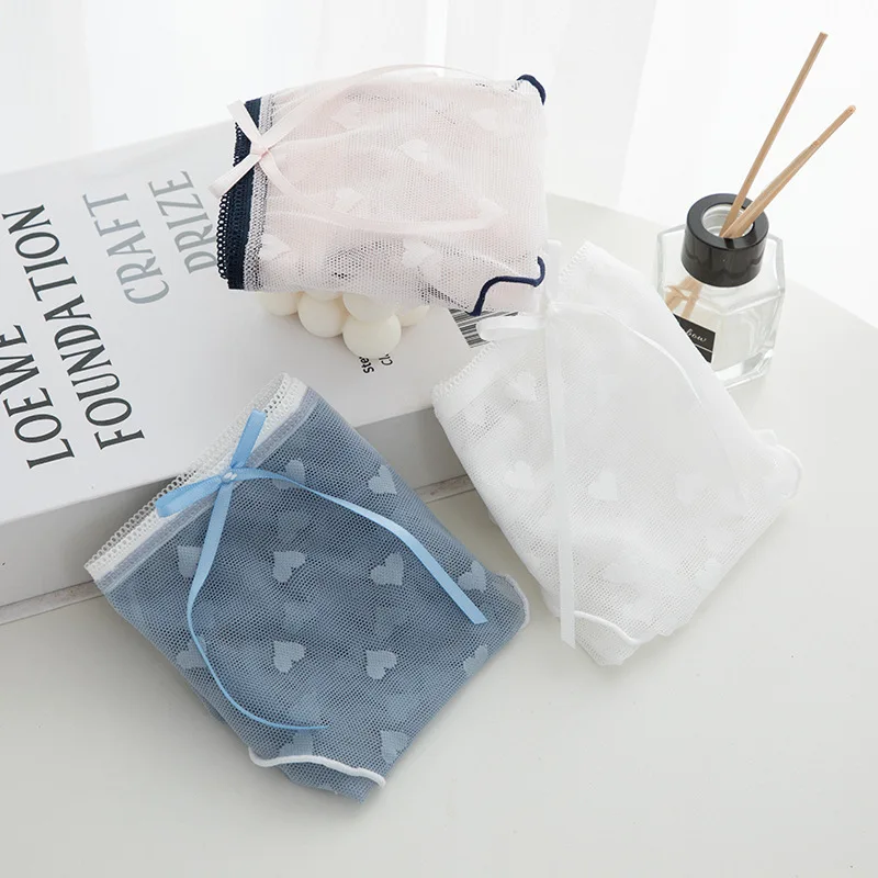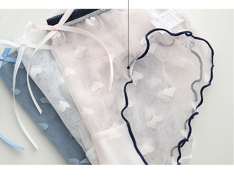 Женские сексуальные кружевные трусики, трусики с бантом и вышивкой в форме сердца для женщин, ультратонкое прозрачное дышащее нижнее белье, милое белье