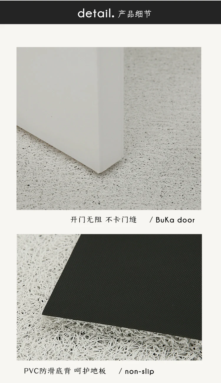 > Коврик можно настроить на в соответствии с размером входа, пожалуйста, свяжитесь с нами, если вам нужно сделать заказ. > Изготовлен из экологически чистого материала, безвредного для человеческого тела. > Противоскользящий Материал коврика из ПВХ может предотвратить соскальзывание и защитить вашу безопасность, материал шелковой петли может впитывать влагу с вашей обуви, делая пол чистым и сухим, также удаляет пыль, грязь, снег и т. д. > Его можно свободно разрезать на любую форму, он подходит для внутреннего и наружного подъезда, коридора, гостиной, спальни, ванной и т. д. > Толщина коврика составляет около 8 мм, он может полностью лежать на полу и не мешать открытию и закрытию двери. > Когда коврик заполнен частицами грязи, вы можете просто очистить его с помощью пылесоса или использовать водяной шланг для краску, а затем дать ему высохнуть на воздухе перед следующим использованием.