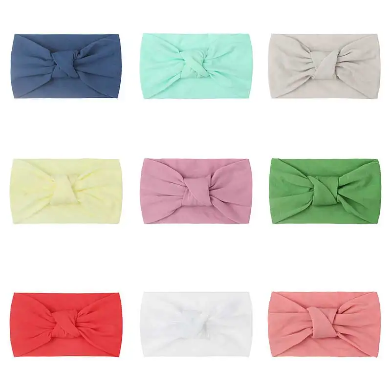 Весенне-Осенняя детская повязка на голову, мягкие эластичные хлопковые повязки на голову для маленьких девочек, однотонные вязаные детские ленты для волос, аксессуары для волос для маленьких девочек