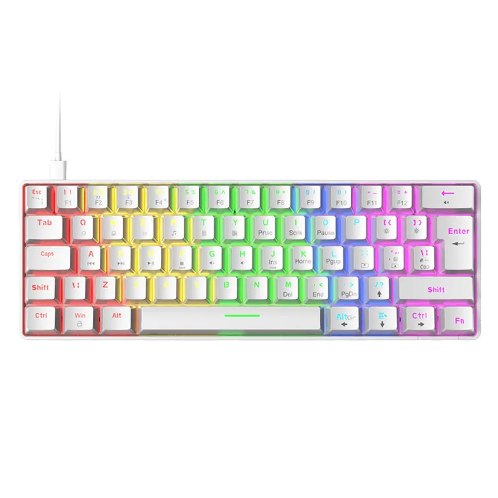 Механическая игровая клавиатура T60 синий переключатель 62 клавиши USB Type C Проводная клавиатура с 18 RGB световыми эффектами для настольного ПК геймераХарактеристика:Механический вал для офисных игр прочный.Двухцветная Кепка для литья под давлением с тонкой текстурой, износостойкостью и сопротивлением смазке.62 ключа компактный макет.На плате задан светильник памяти.Кабель интерфейса Type-C подключи и работай, легко снимается.18 виды задняя светильник режим RGB светодиодный светильник эффект.Спецификация:Модель: T60Цвет: черный, белый, синий, розовыйРежим подключения компьютера: проводное соединение с интерфейсом type-CТип переключателя: зеленая осьТип ключа: двухцветная литьевая светящаяся Крышка для ключаКоличество клавиш: 62 клавишиВоздействие: нетСветовой эффект лампы: 18 видов эффекта лампы RGBВес изделия: около 570 гРазмер изделия: 290*100*40 мм/11,4*3,93*1,57 дюймаПримечание:В связи с различиями мониторов и эффектами освещения реальный цвет товара может немного отличаться от цвета на фотографиях. Спасибо!Возможны отклонения в 1-2 см вследствие измерений вручную.