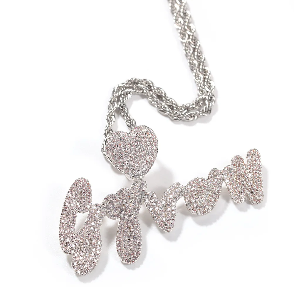 Заказное имя с сердечком застежка e подвески-буквы хип-хоп медь оже...