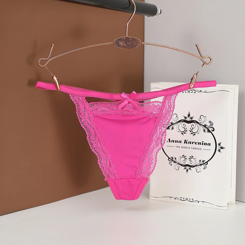 Для женщин стринги выдалбливают Лук кружевные трусики пикантные Трусы-стринги с низким берцем на каждый день с высокой талией, трусы, нижнее белье