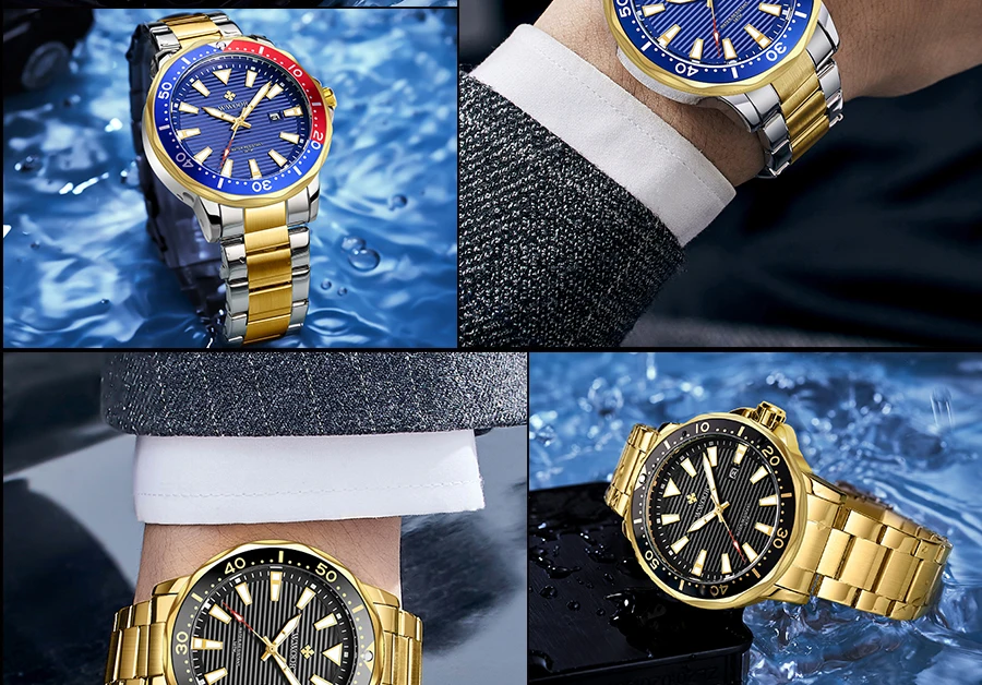 WWOOR 2021 новый дизайн золотые полностью стальные часы мужские с дайвером светящаяся Автоматическая Дата