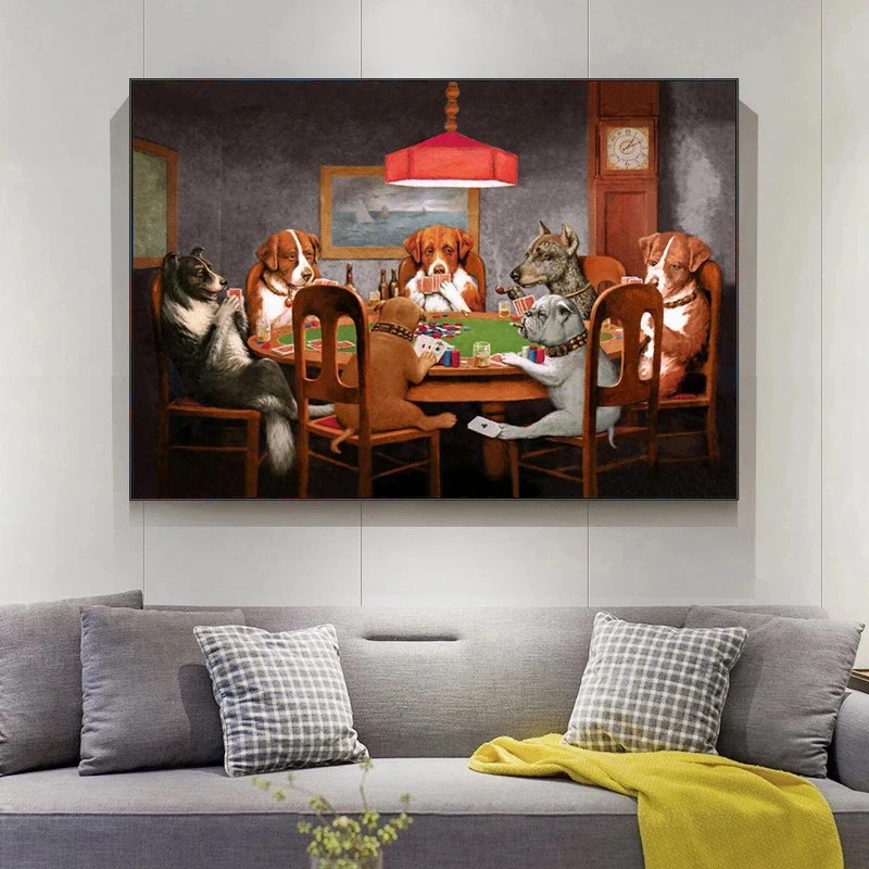 Картина на холсте с изображением собак, игральных карт, покера, кар...