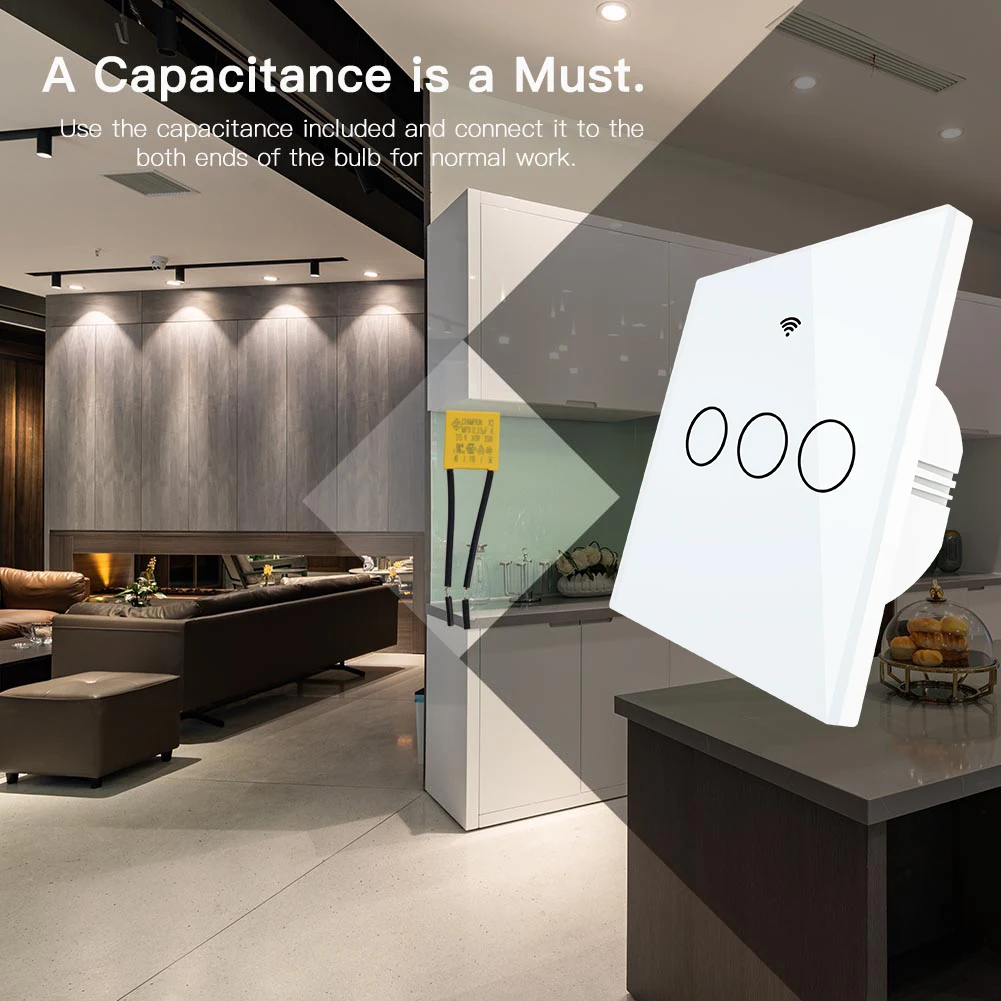 1.Не требуется нейтральный провод: Не требуйте нейтрального провода и его можно легко установить без переподключения имеющегося провода. Просто замените старые переключатели для работы с различными устройствами. И даже уникальная панель из закаленного стекла подходит для различных видов стилей украшения.(Внимание: Емкость должна быть подключена к обоим концам ламп для нормальной работы.)
