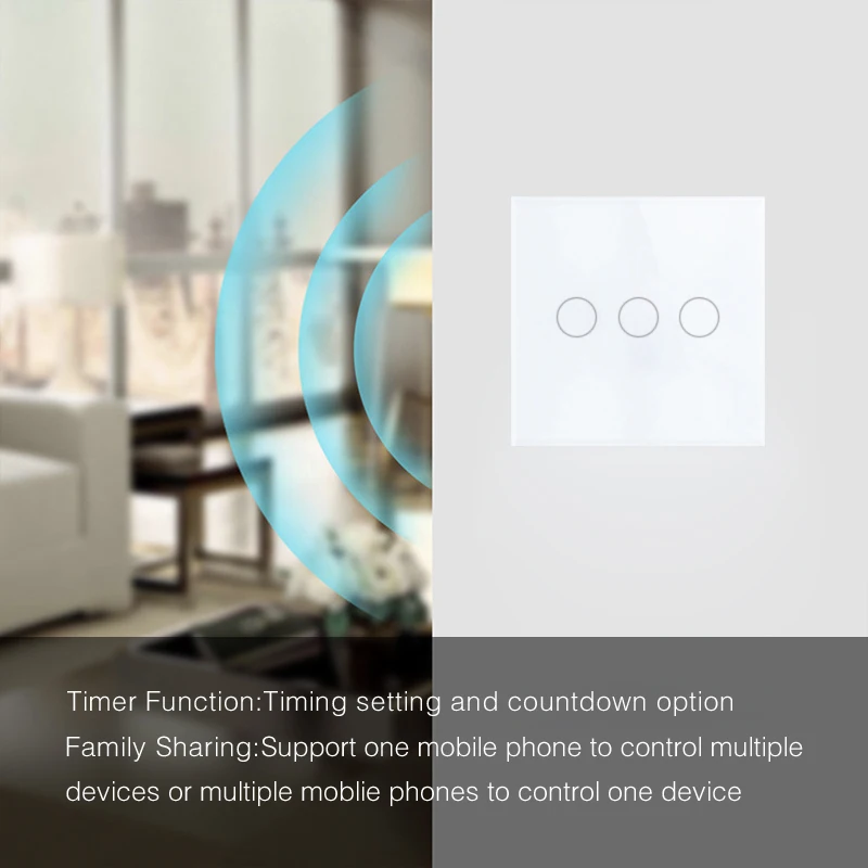 4.Пульт дистанционного управления:Управляйте своимЭлектрическое применениеС приложением для телефона "SMART LIFE", В любом месте, в любое время, если ваш телефон имеет сигнал. (aСенсорное управлениеНастенный переключатель передатчикаТакжеВозможностьНепосредственноУправляйте устройствамиИз-за встроенного RF433.)