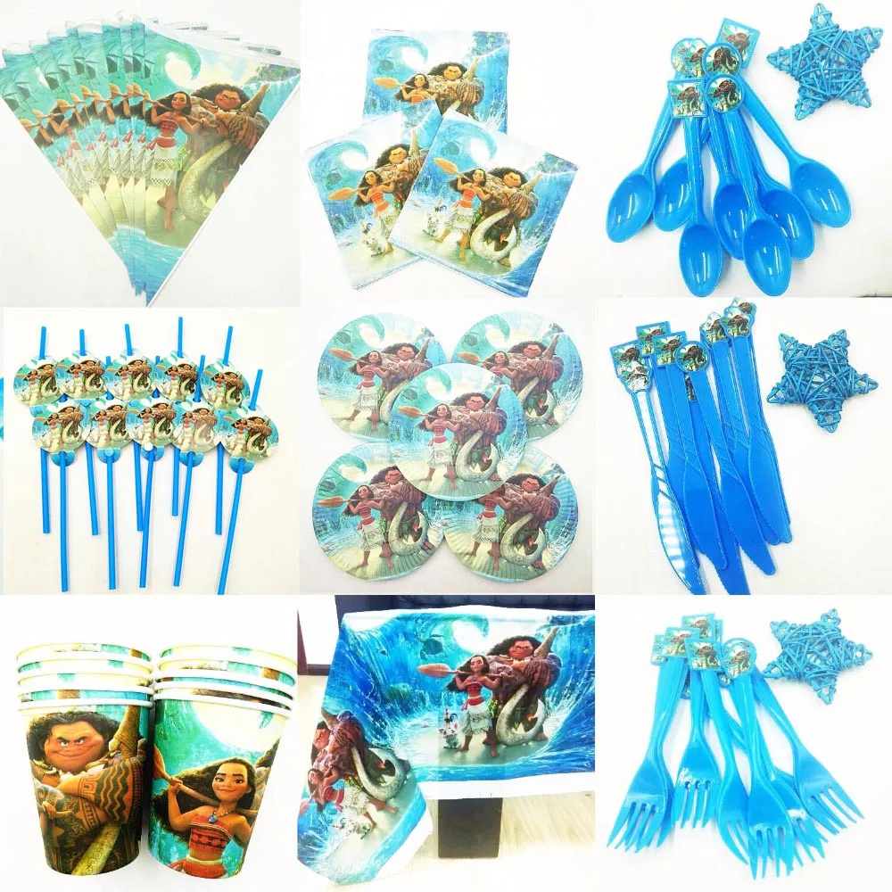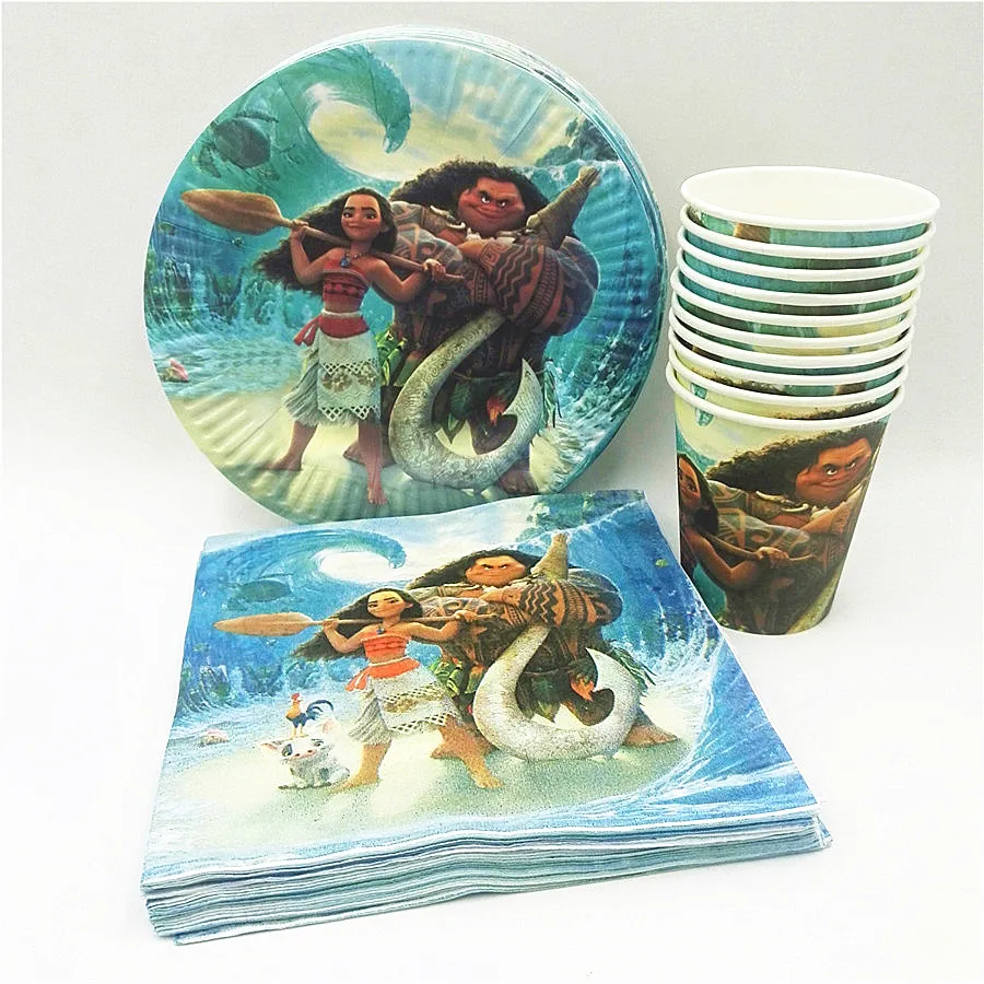 Набор посуды Moana, 82 шт., баннер, тарелка для чашек, украшения для дня рождения, детские праздничные принадлежности для девочек, одноразовая посуда