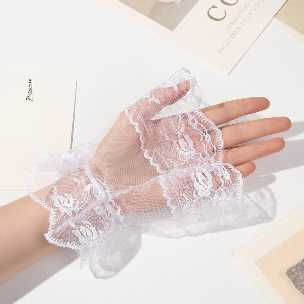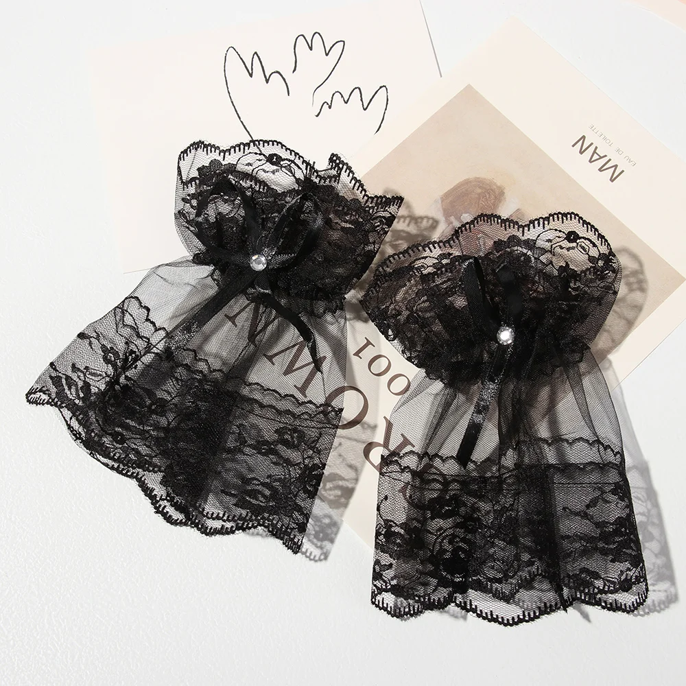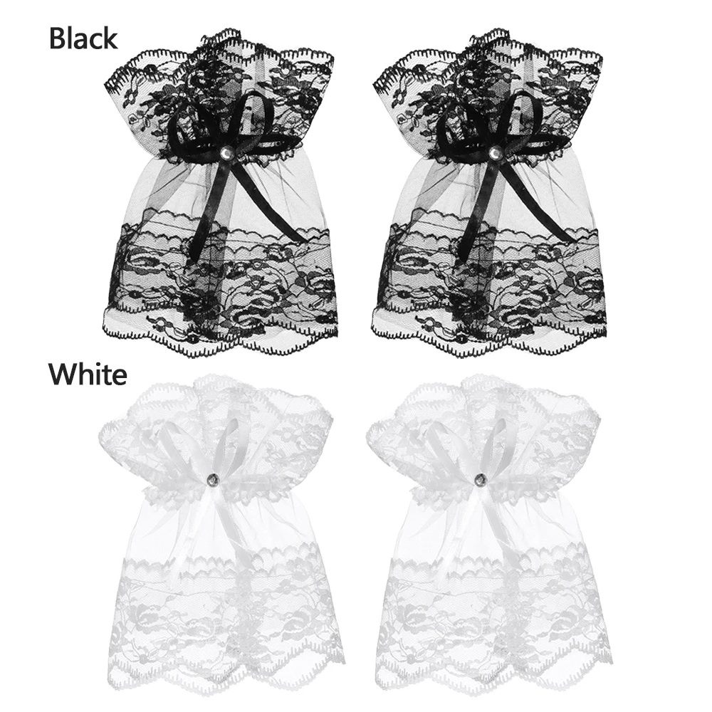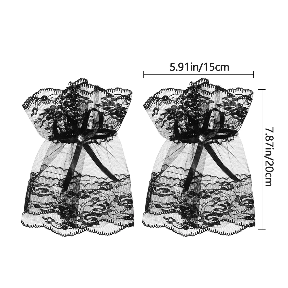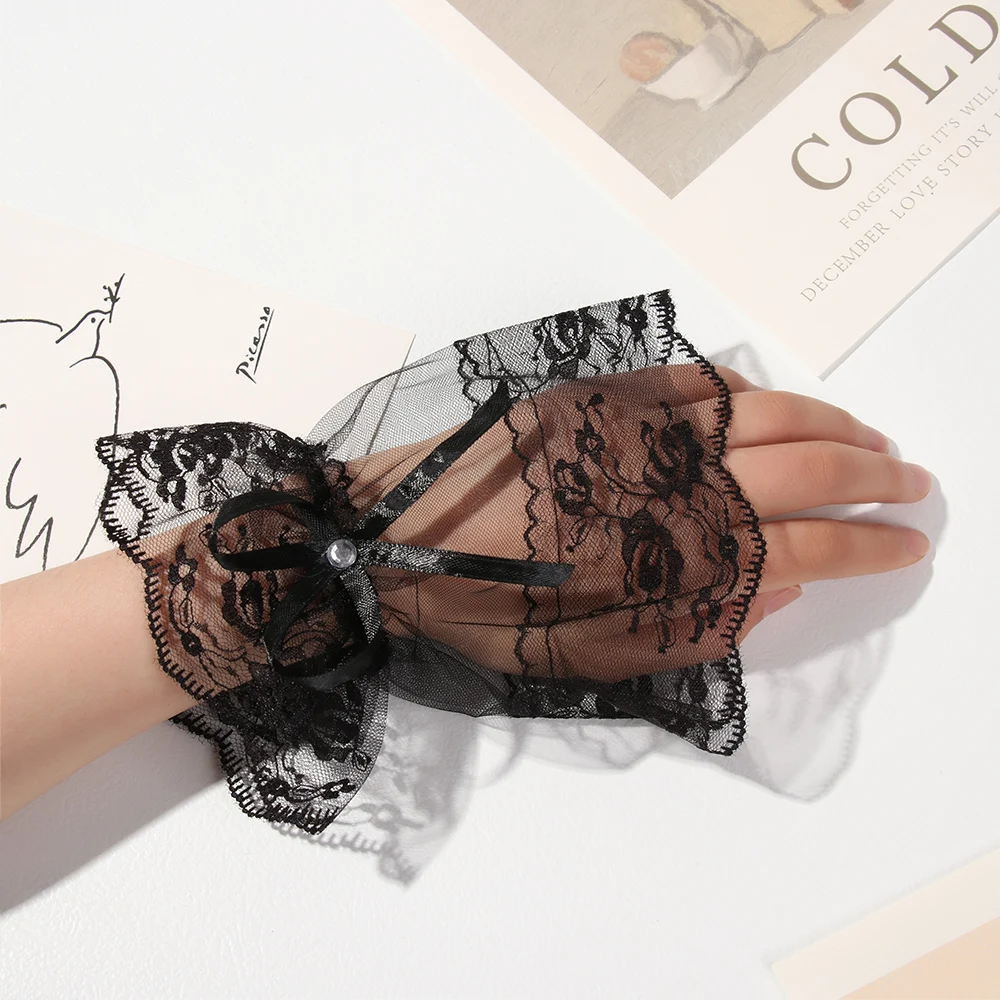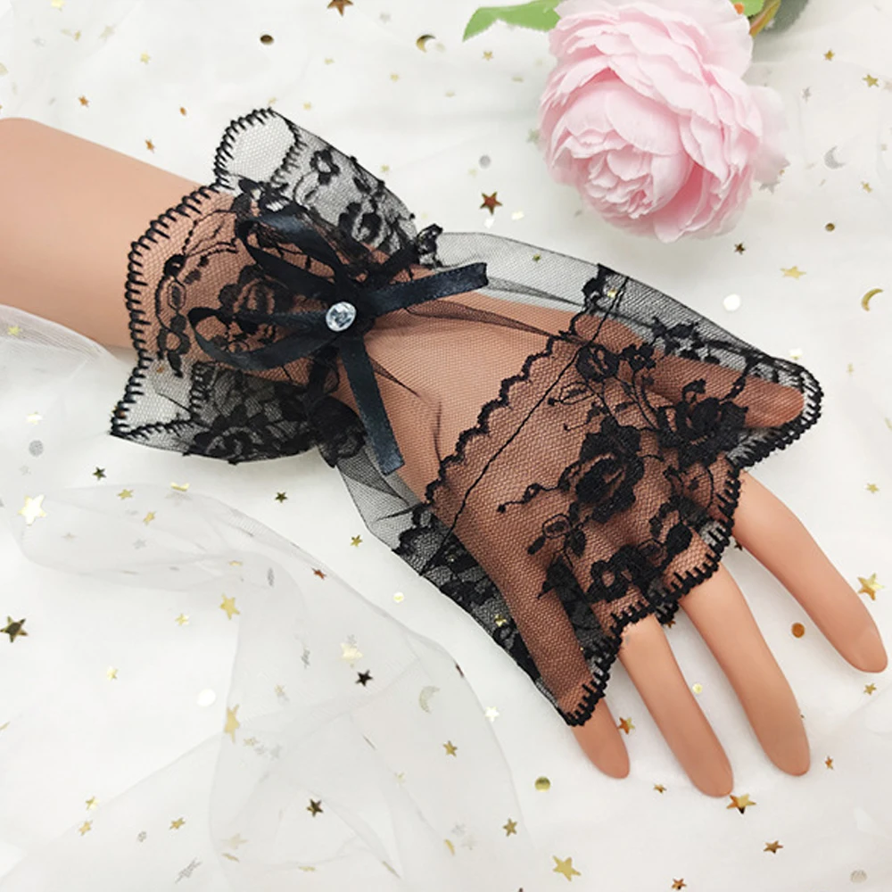 1 пара Женские готические черные кружевные браслеты на запястье для Хэллоуина солнцезащитные перчатки Стразы с бантом без пальцев для вечерние