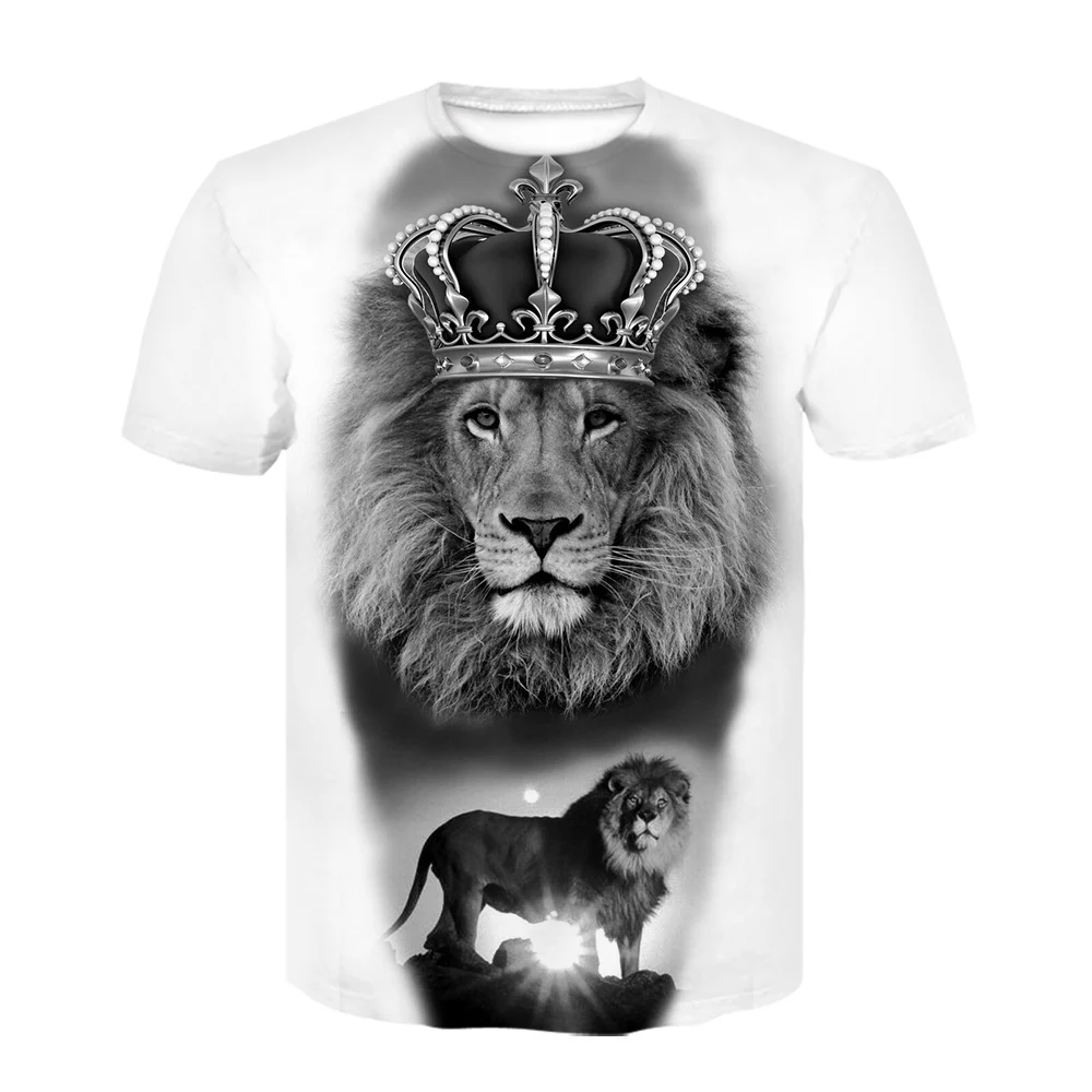 Белая футболка с животными, футболка с 3D принтом льва, модная Клас...